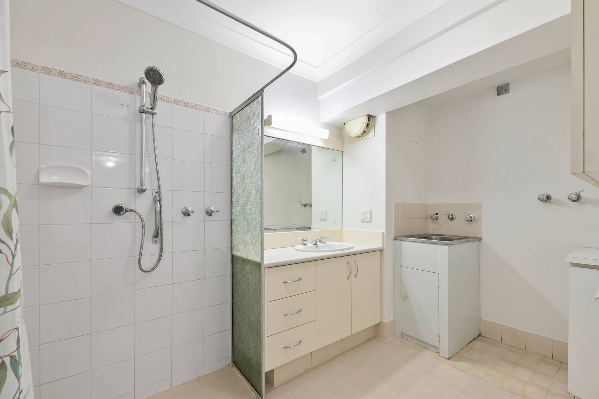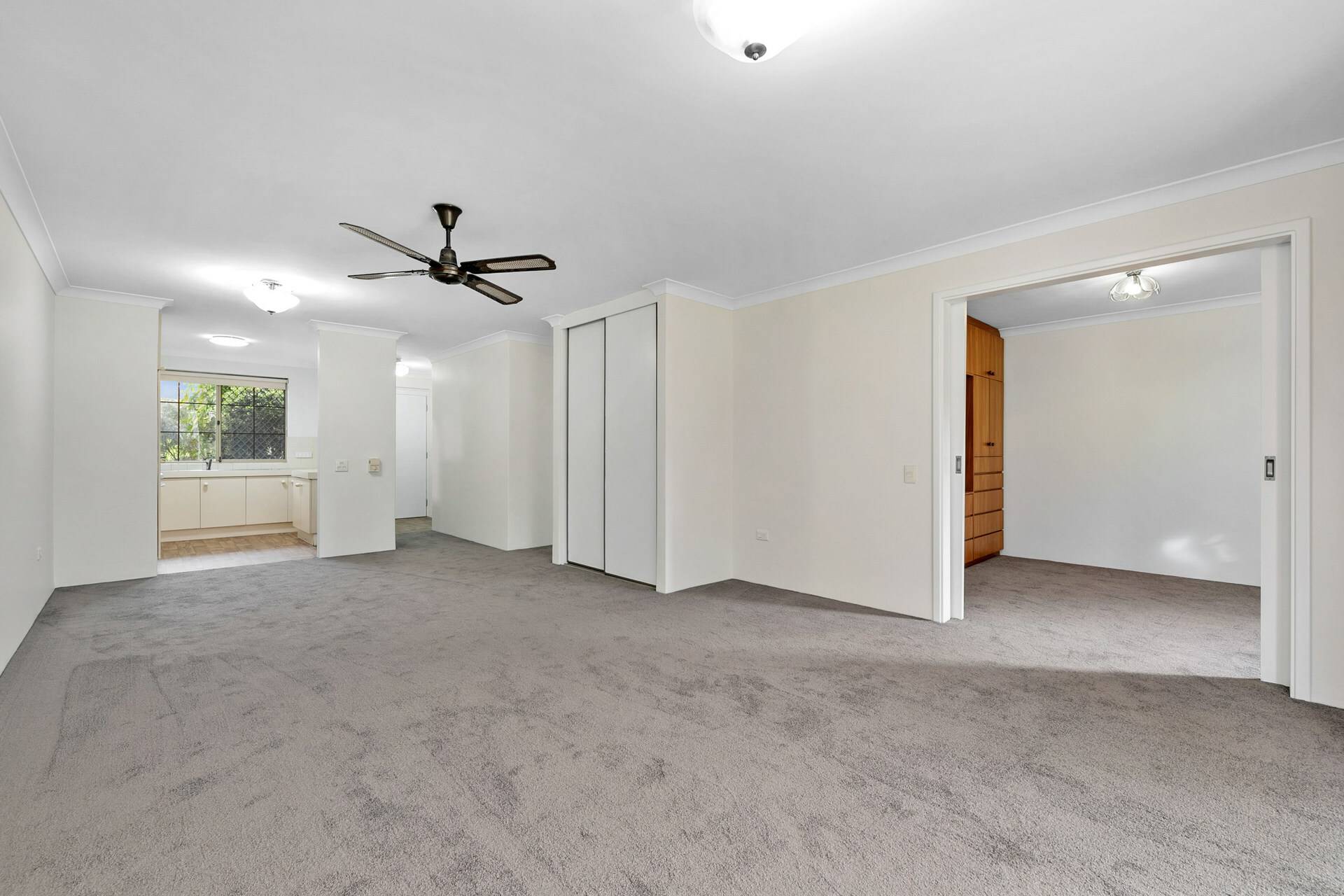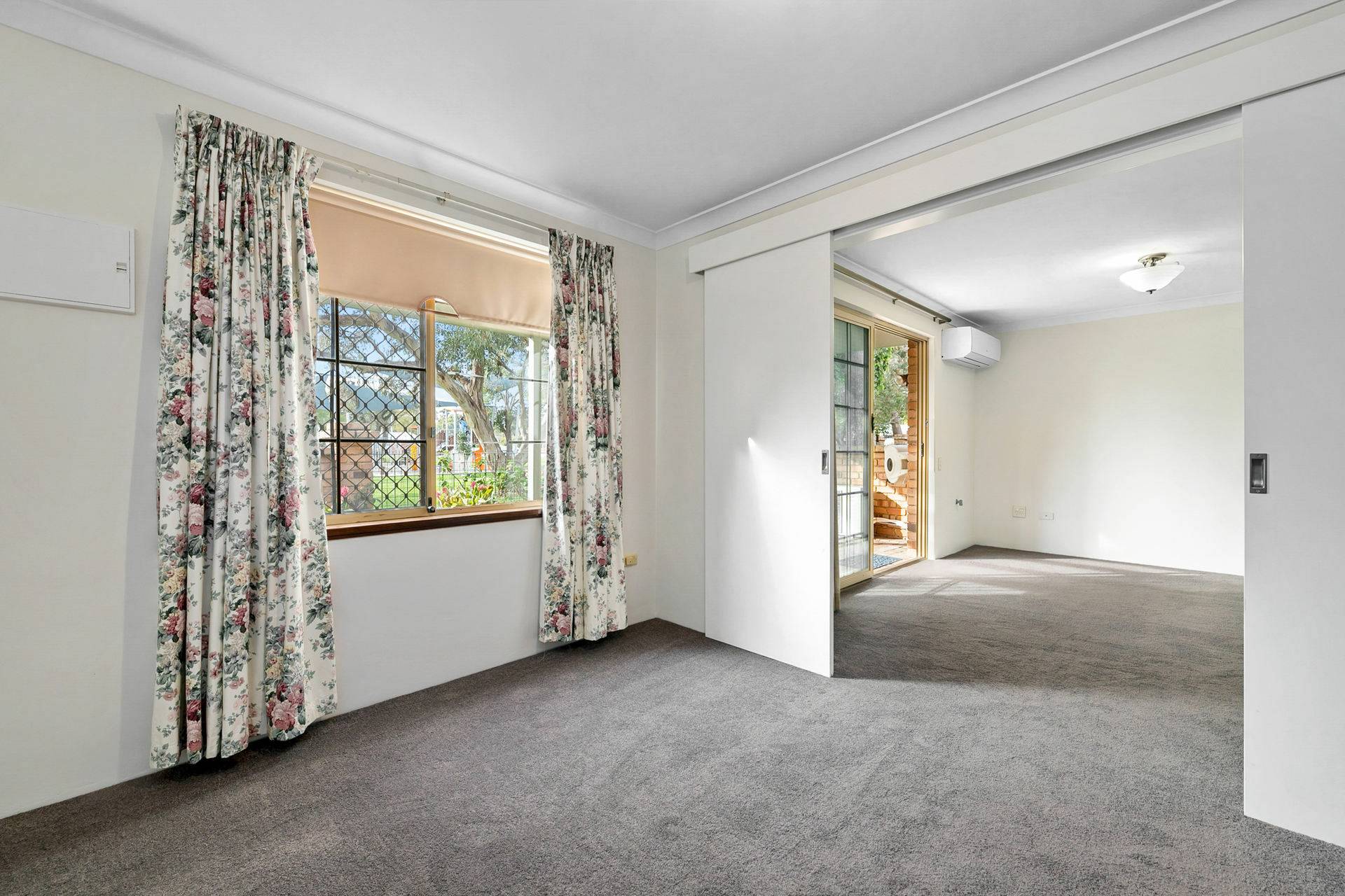 Split-system air-conditioning, ceiling fan and gas bayonet to living/dining area