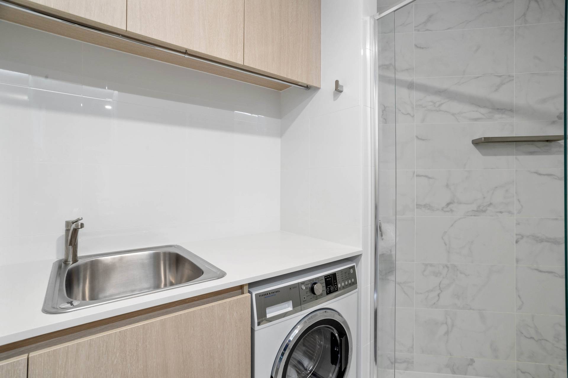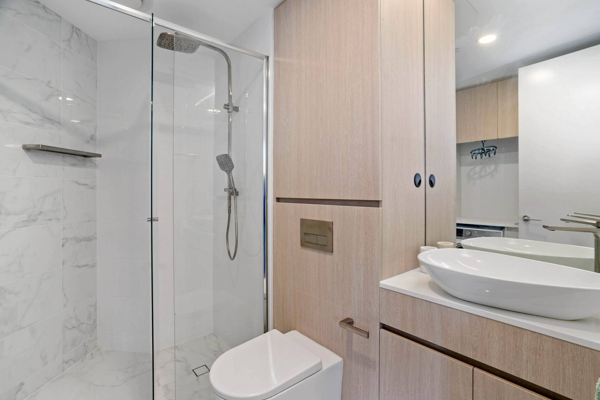 * Stylish bathroom with built in laundry and storage