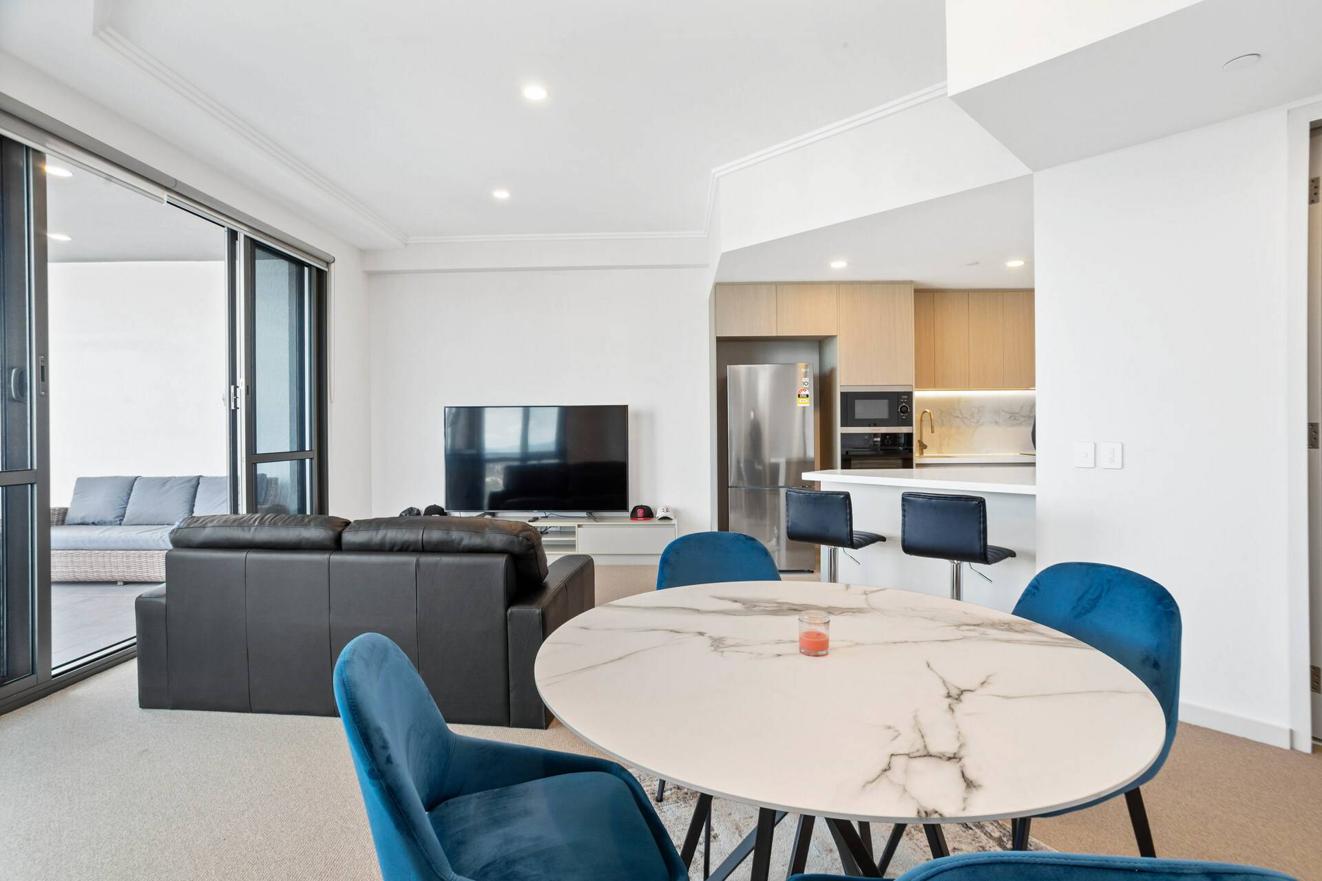 * Open plan living area with balcony access