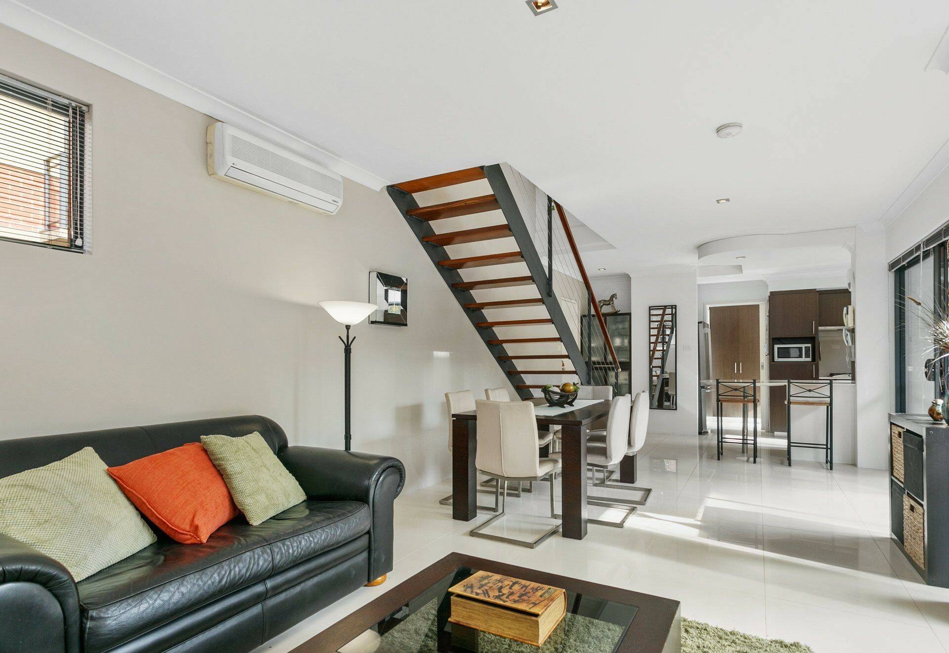 The property consists of a secure front courtyard which is tree lined for added privacy. Ground floor is flooded with sunlight and offers an open plan living room and dining space. The area is over looked by a modern kitchen with ample cupboard space, gas hob, electric oven and dishwasher. Laundry and power room situated on the ground level.
