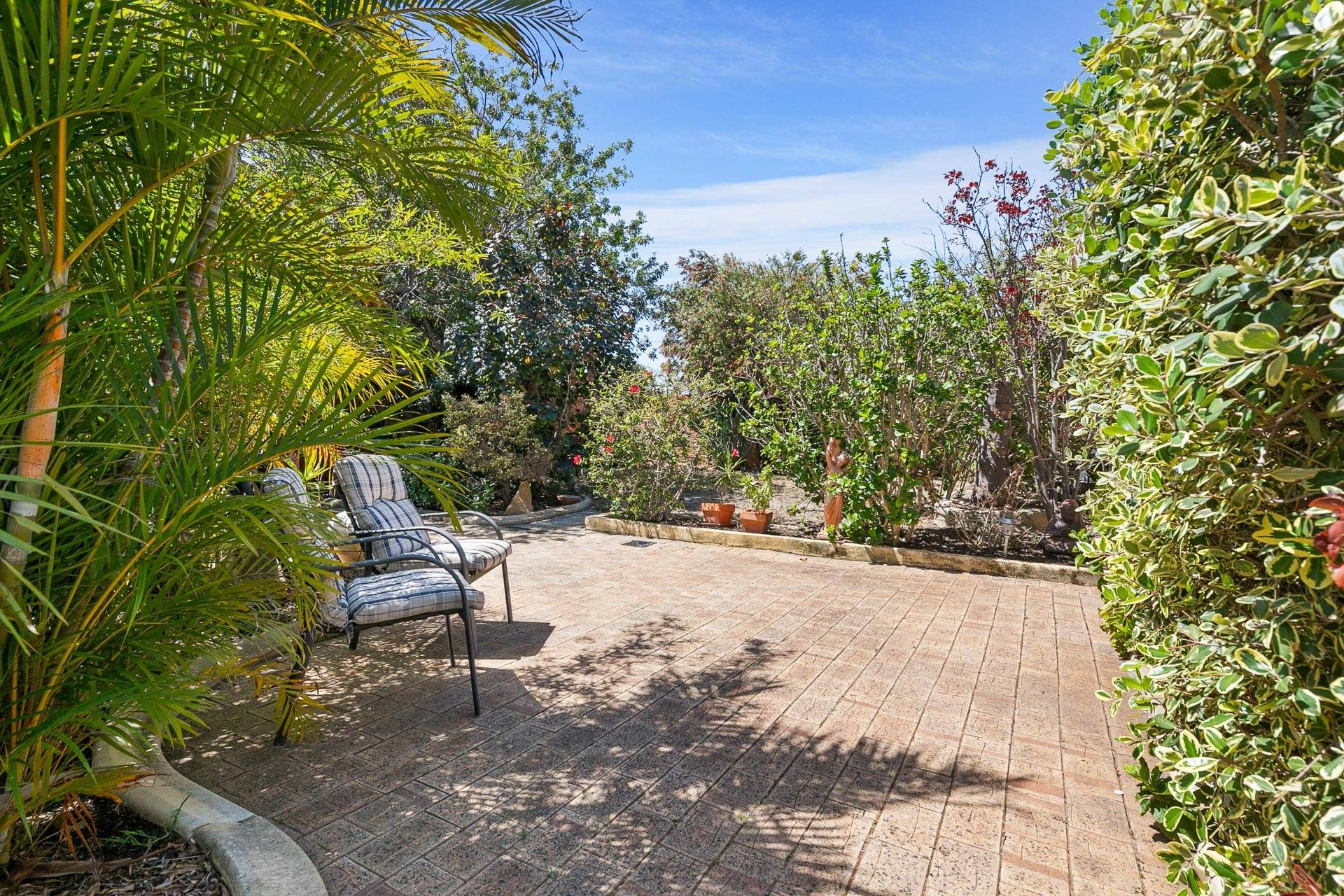 The 530sqm strata block is accessed via Norma Road, with no common property or shared driveway. As the home is nestled to the rear of the block, the front yard can be left to your imagination… Currently the mature gardens offer a private oasis to enjoy the sun or to find a shady spot to relax in.