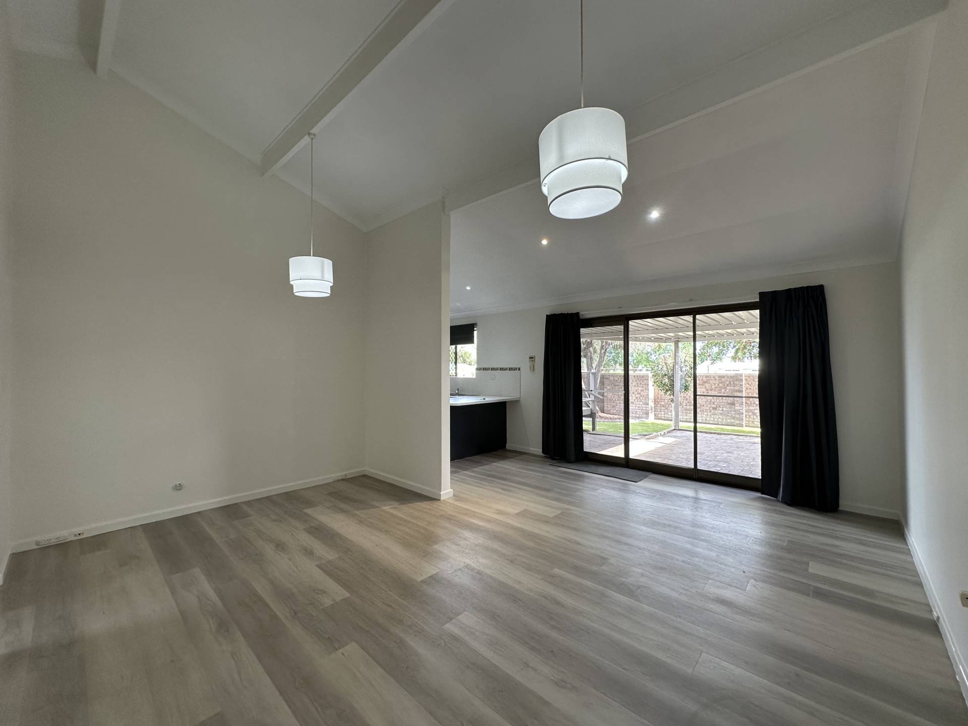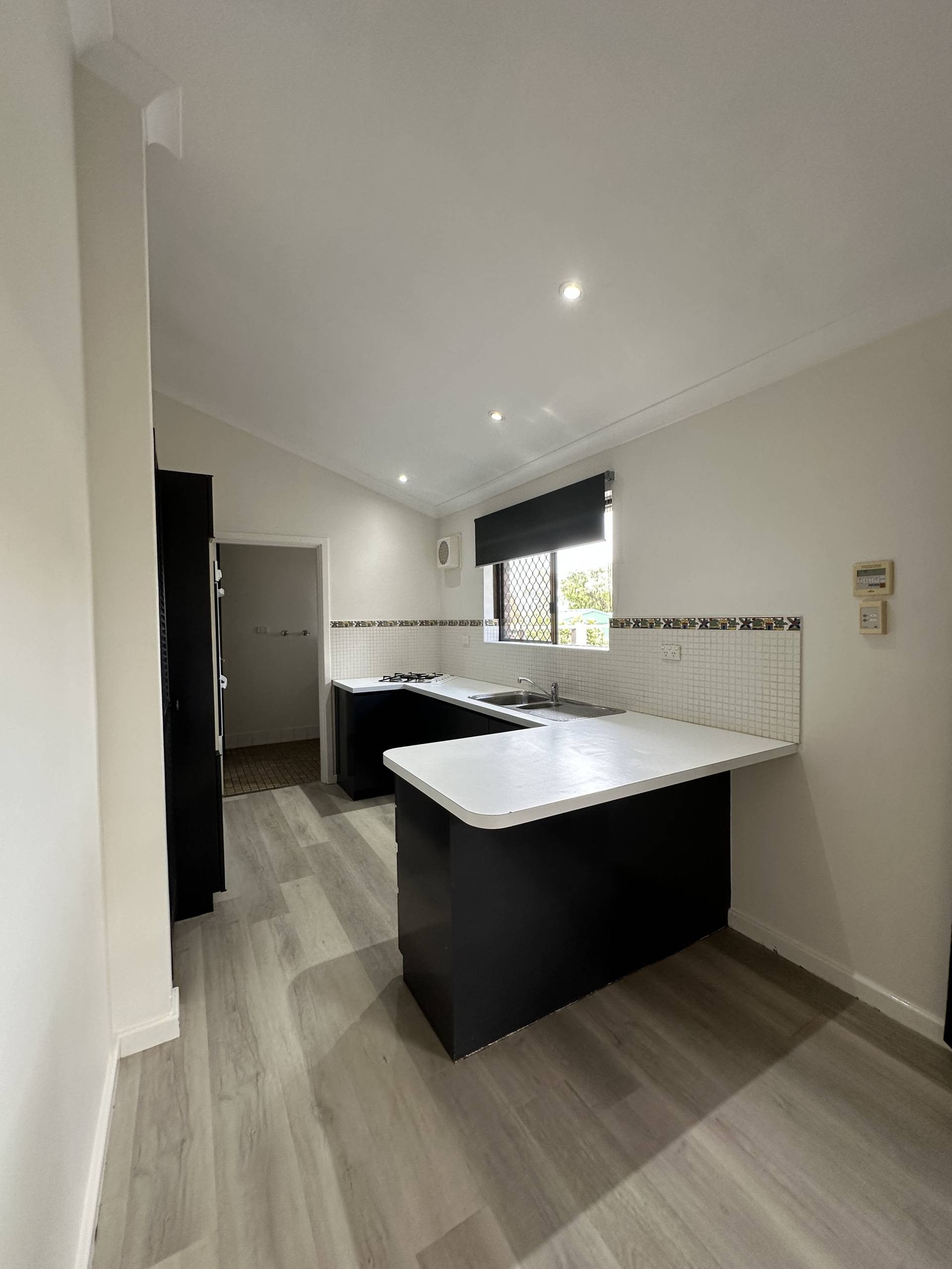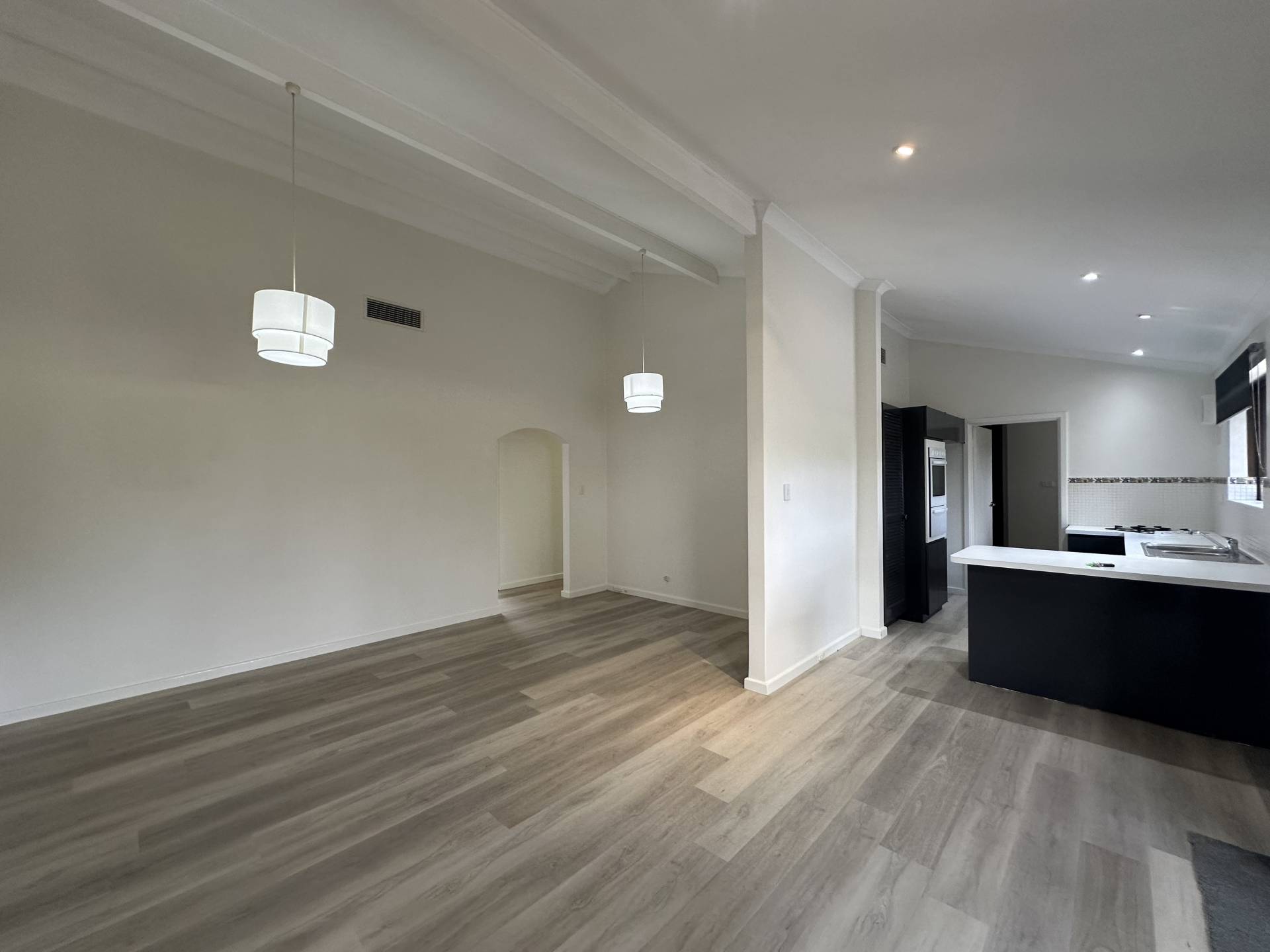 Open plan lounge and dining with sky high ceilings, overlooking the kitchen. Gas hob, electric oven and ample cupboard space. Ducted air con and security screens to most doors and windows.