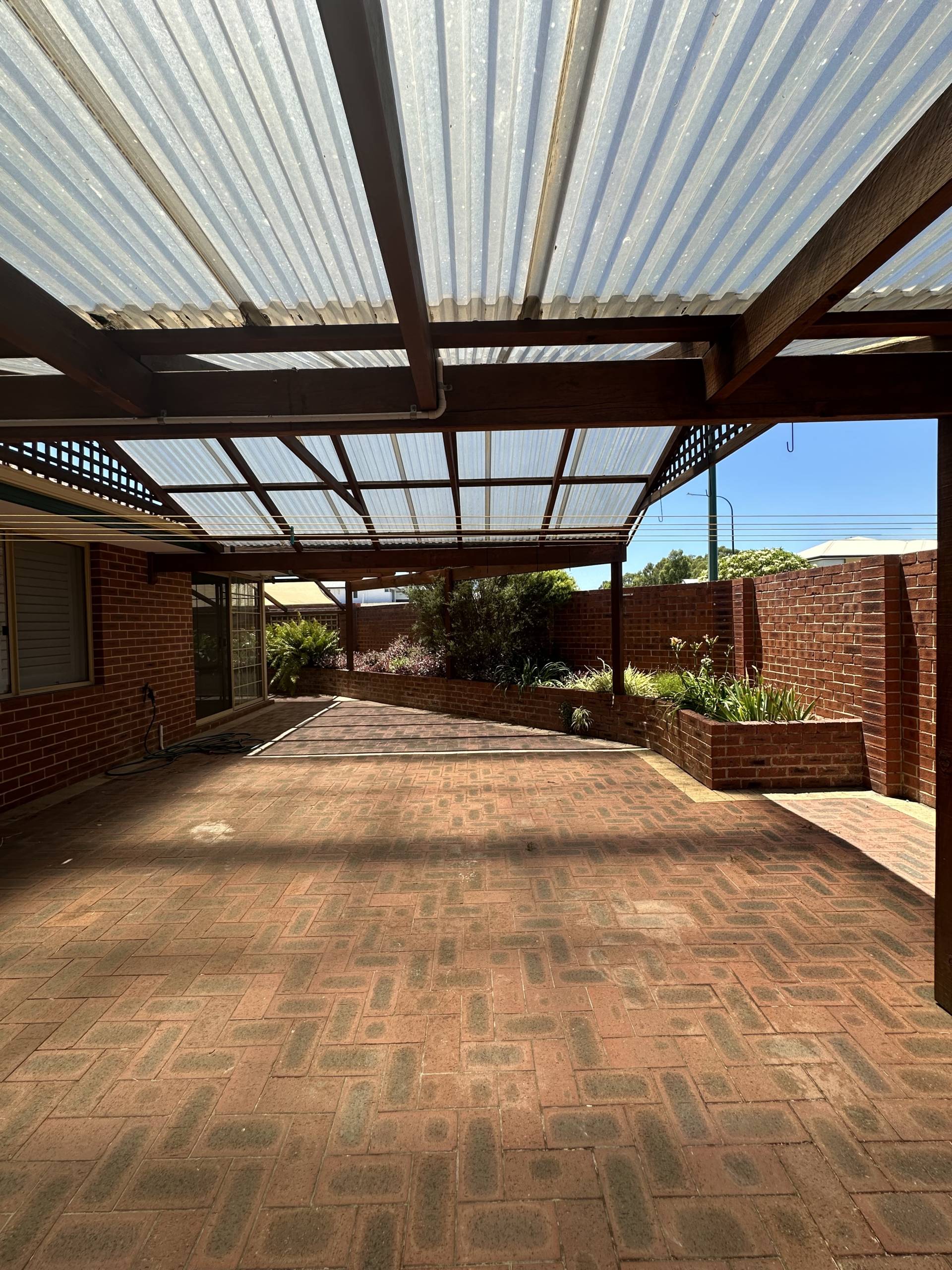 Large paved front yard, with a double carport and room for up to 4 cars! Store room. Very easy care gardens to rear courtyard - Large patio area.