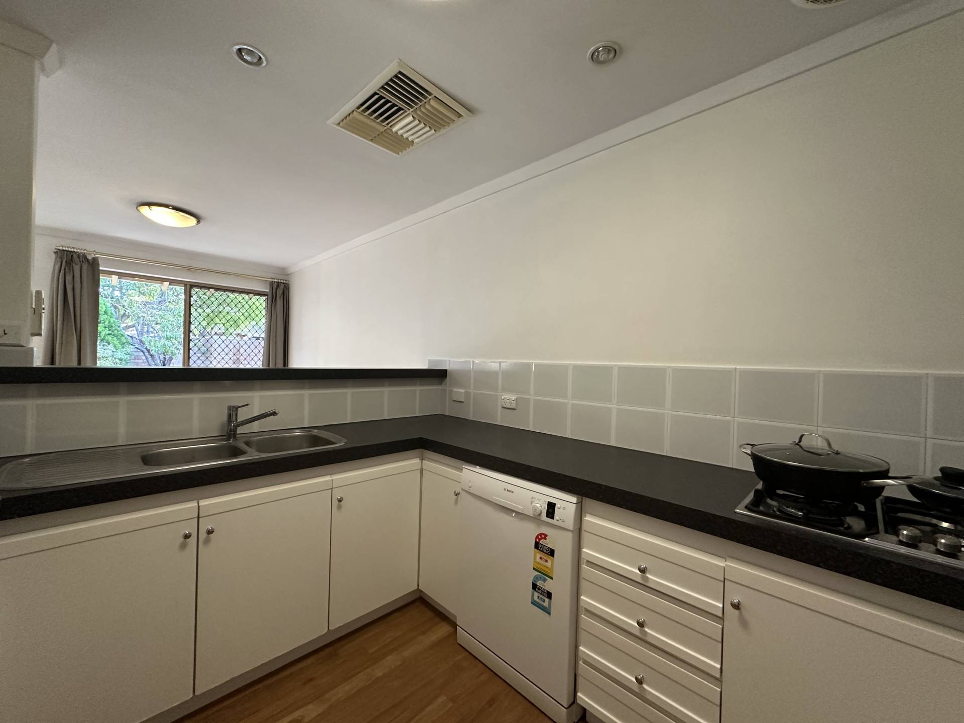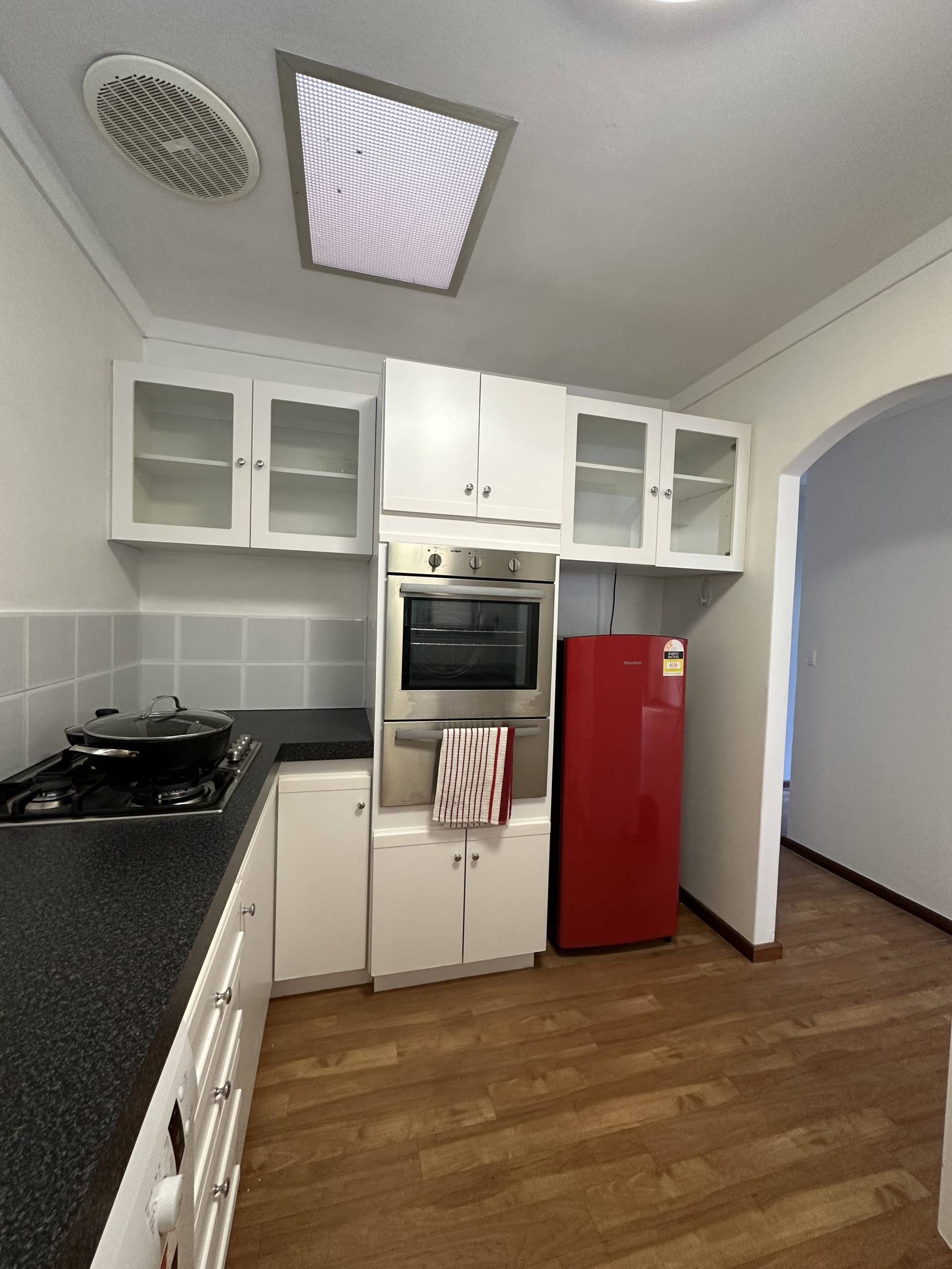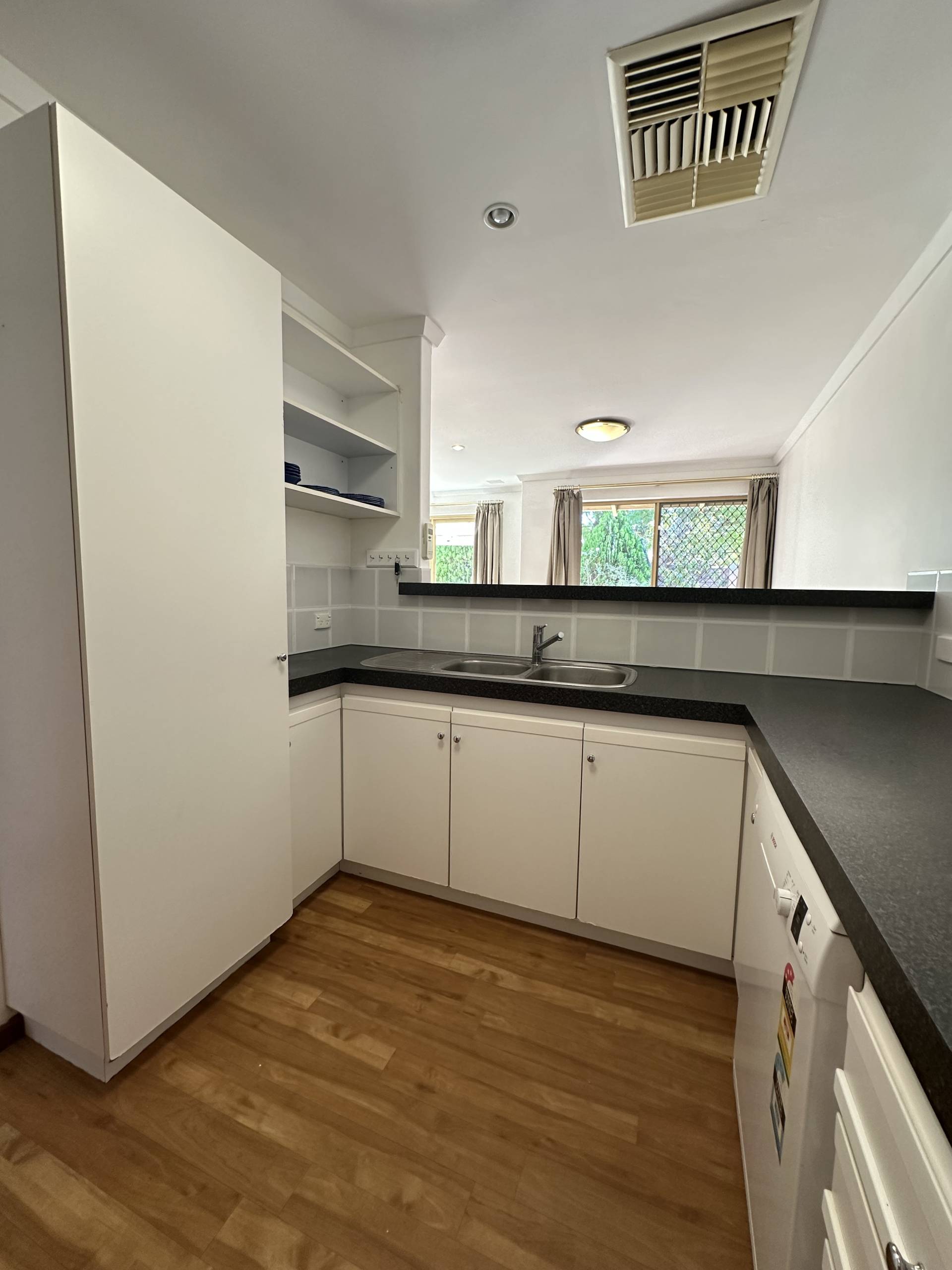 This home has been thoughtfully maintained and is available from early May. The space consists of an open plan lounge/dining space which over looks the front courtyard. The kitchen offers ample cupboard and bench space with a gas hob, electric oven and dishwasher.