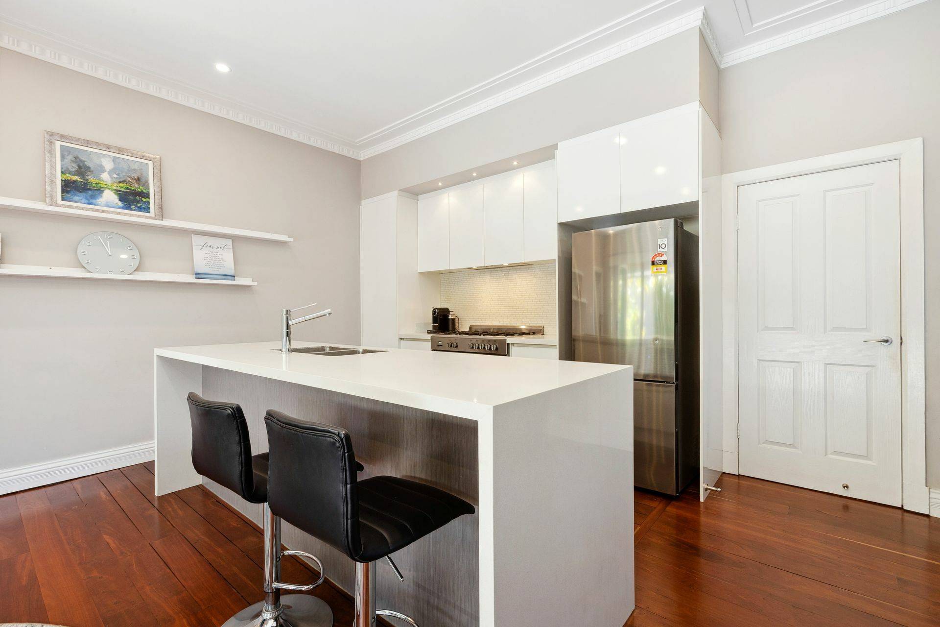 Street frontage position on a 458sqm GREEN TITLE block – Gated entry and high boundary walls allows for a private grassed front yard and raised porch entrance. As you make your way through the home you will be greeted by high ceilings, ornate cornices and original polished jarrah flooring.