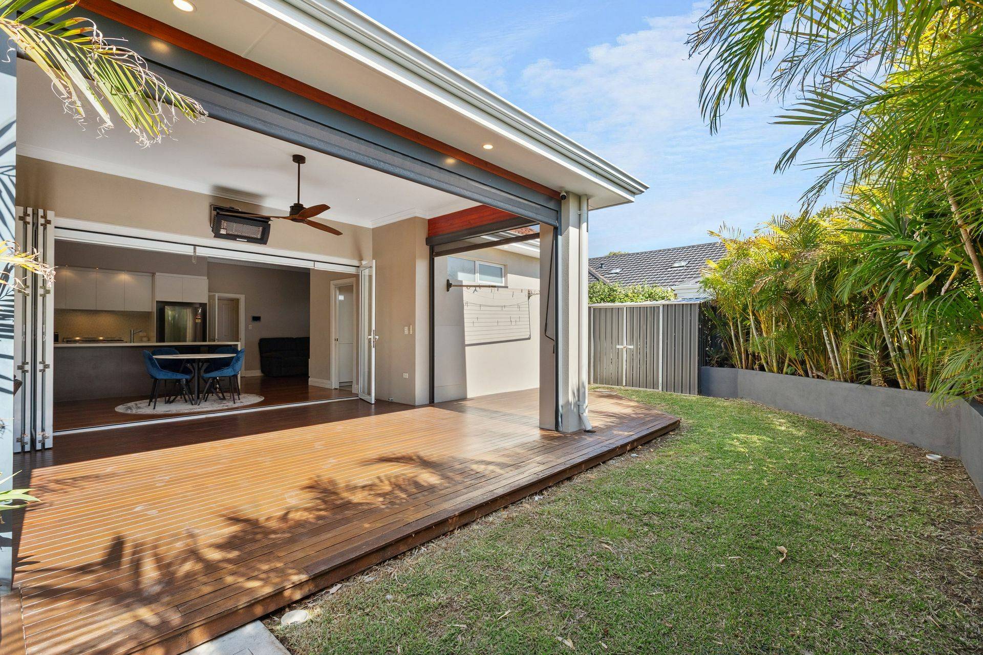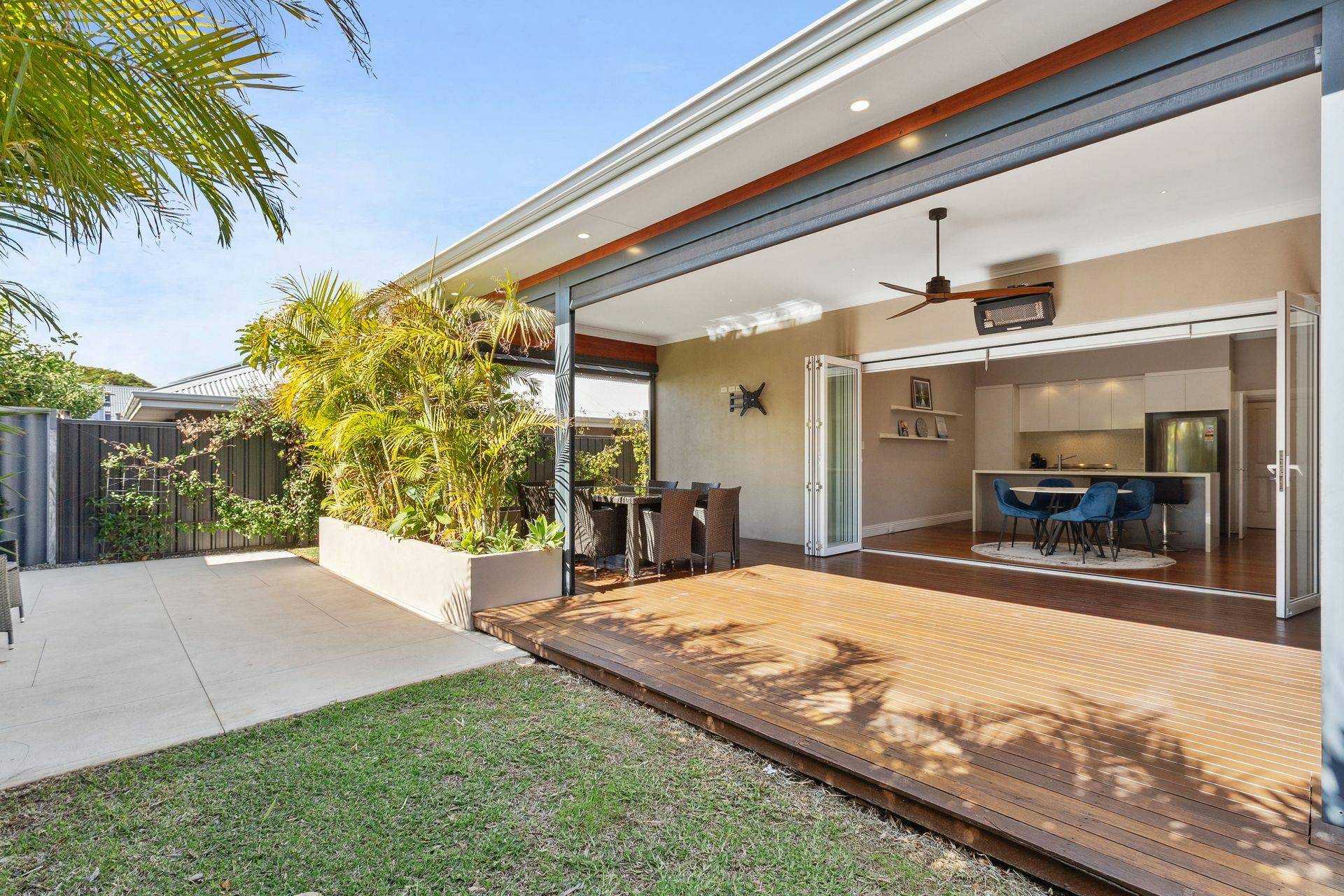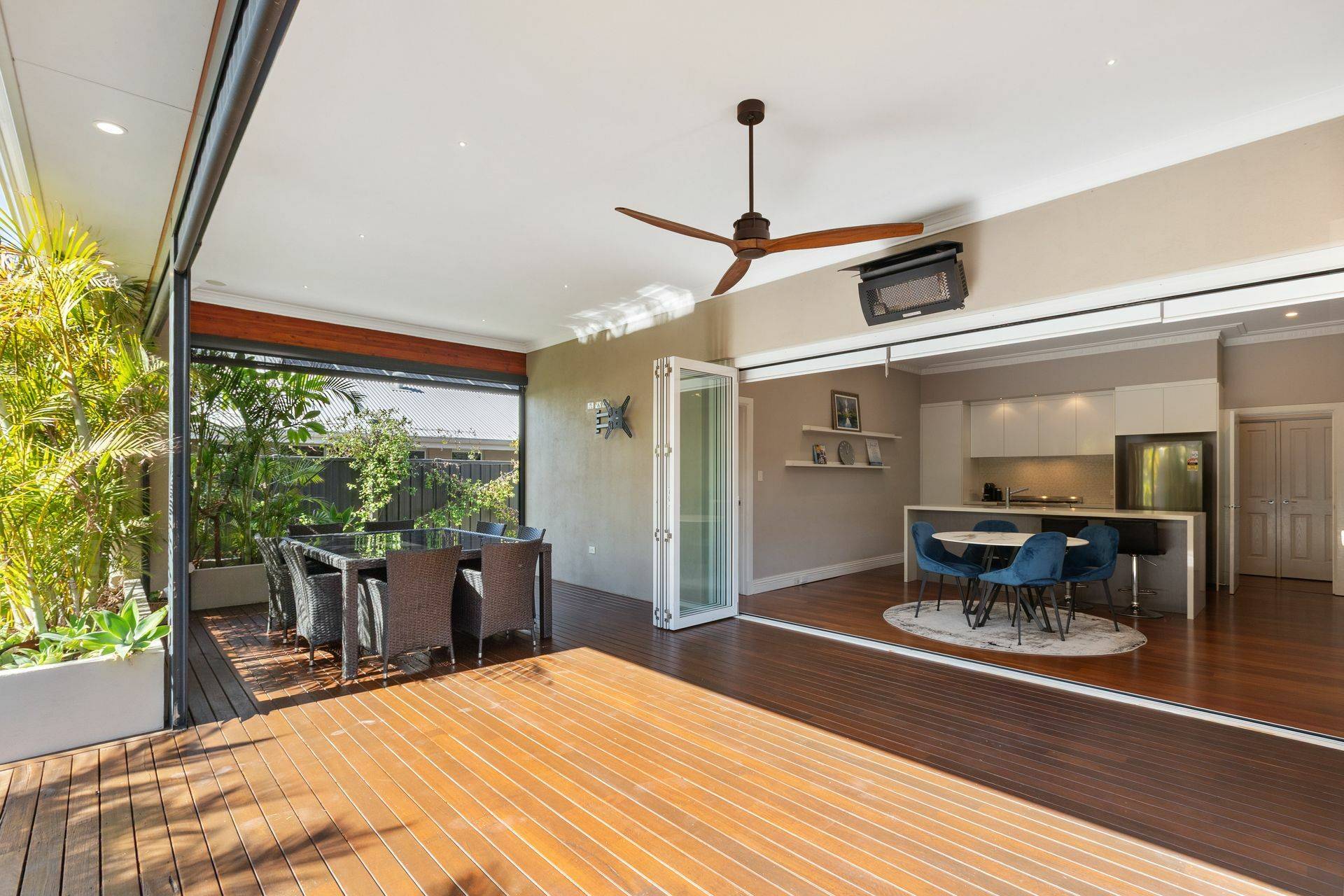 - Gas heater and pull-down café blinds to alfresco
