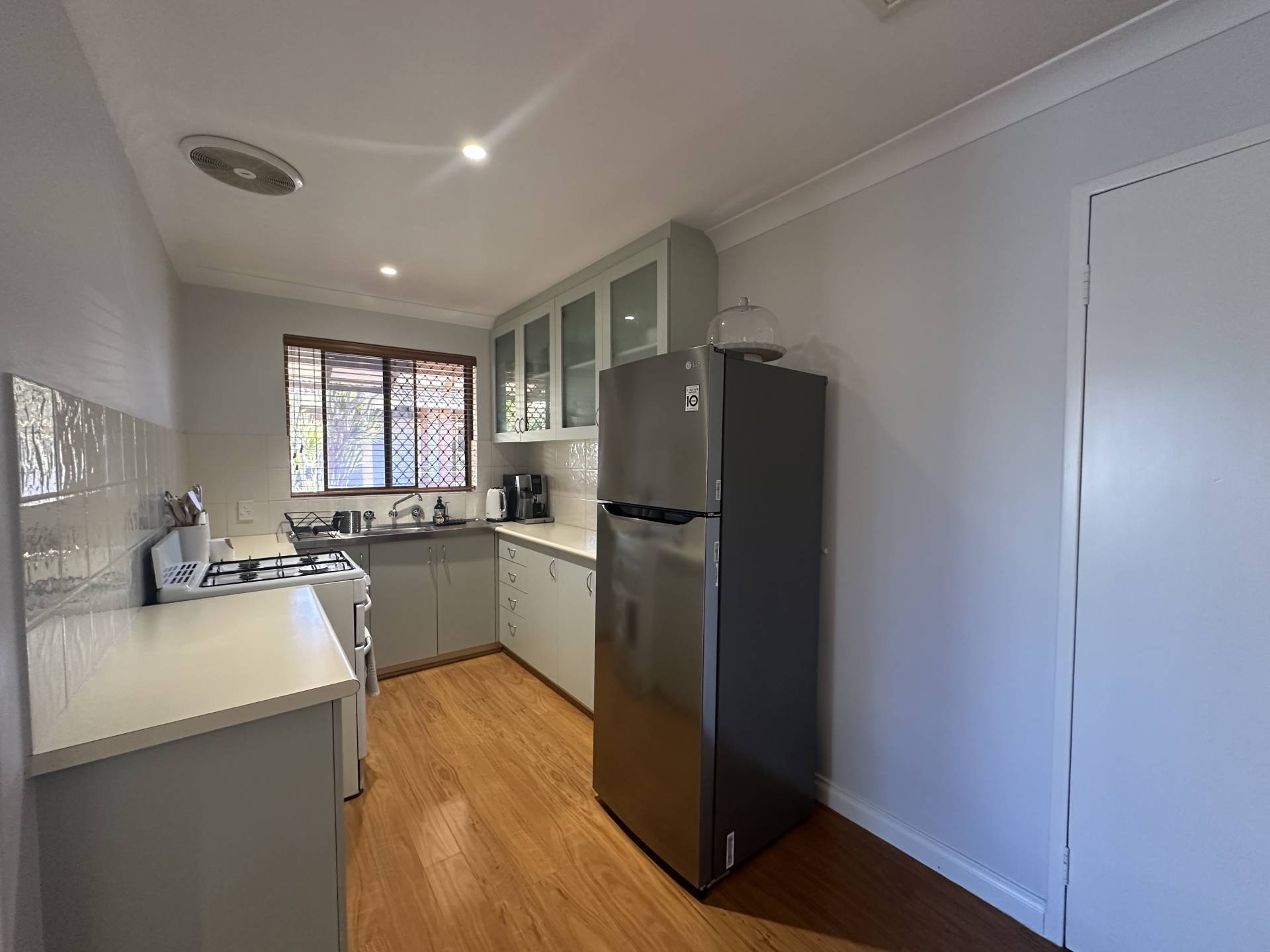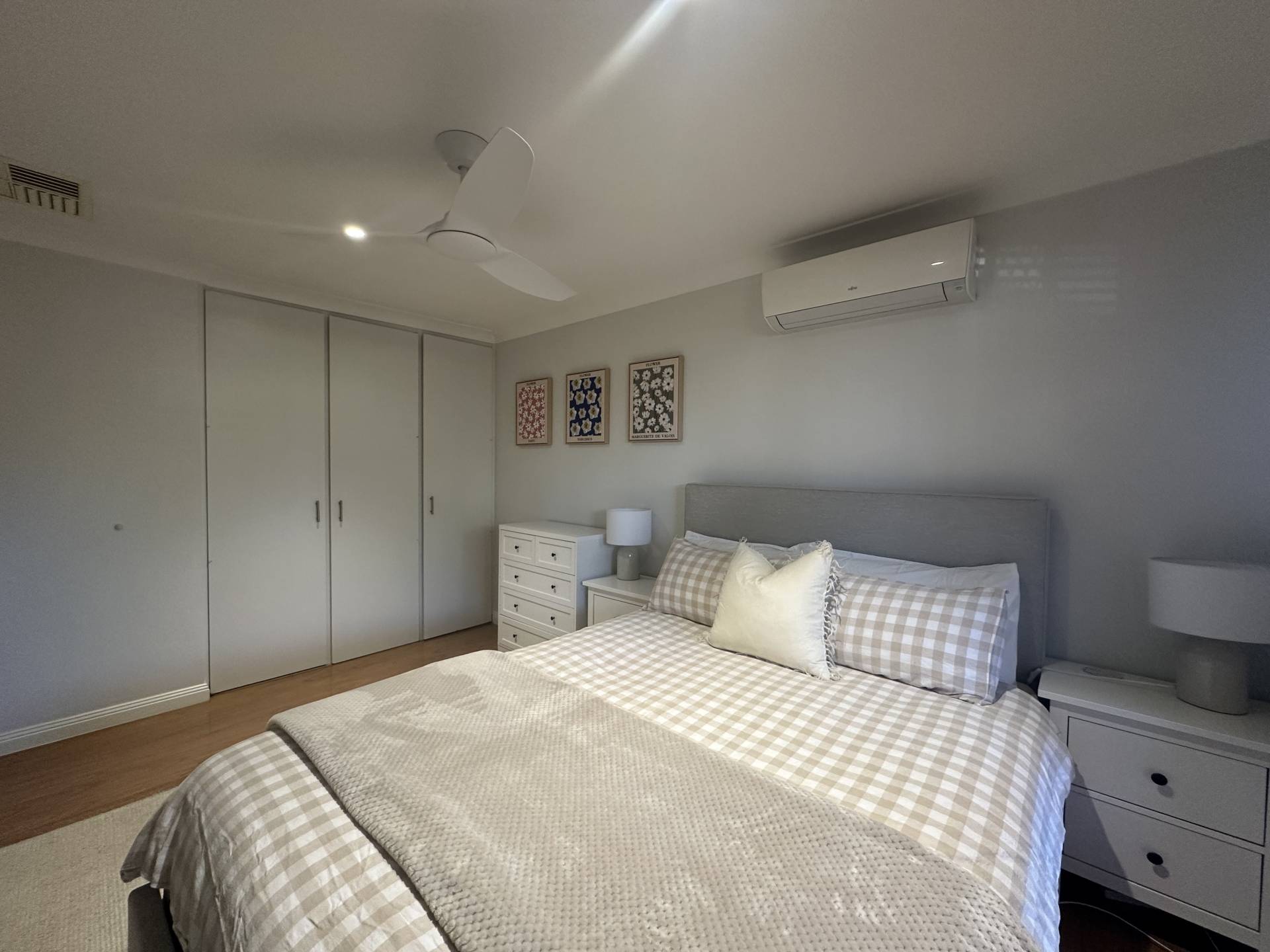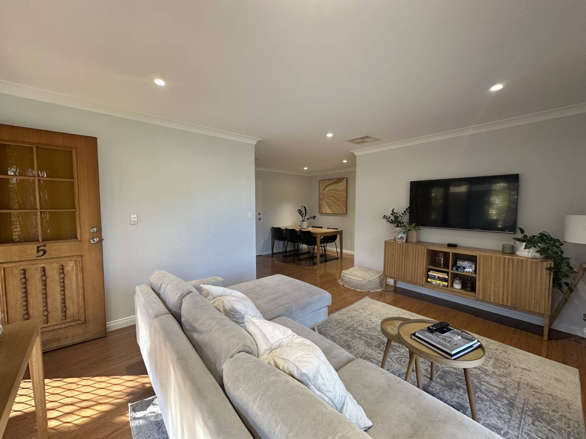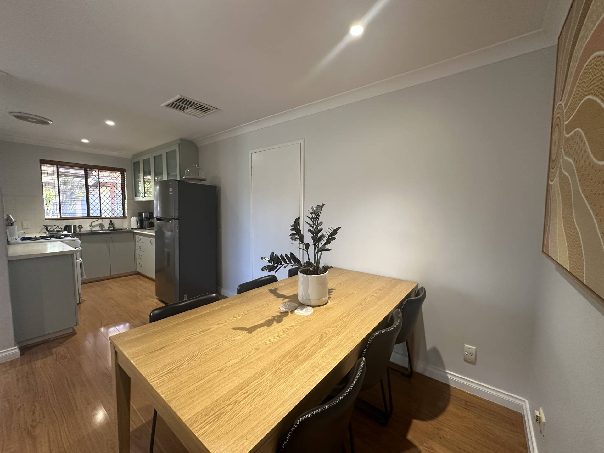 The property consists of neutral colour tones and floating floorboards which flow throughout. The open plan living space is flooded with natural sunlight and is overlooked by the dining space. The kitchen includes ample bench space, gas cooking and room for a double fridge or freestanding pantry.