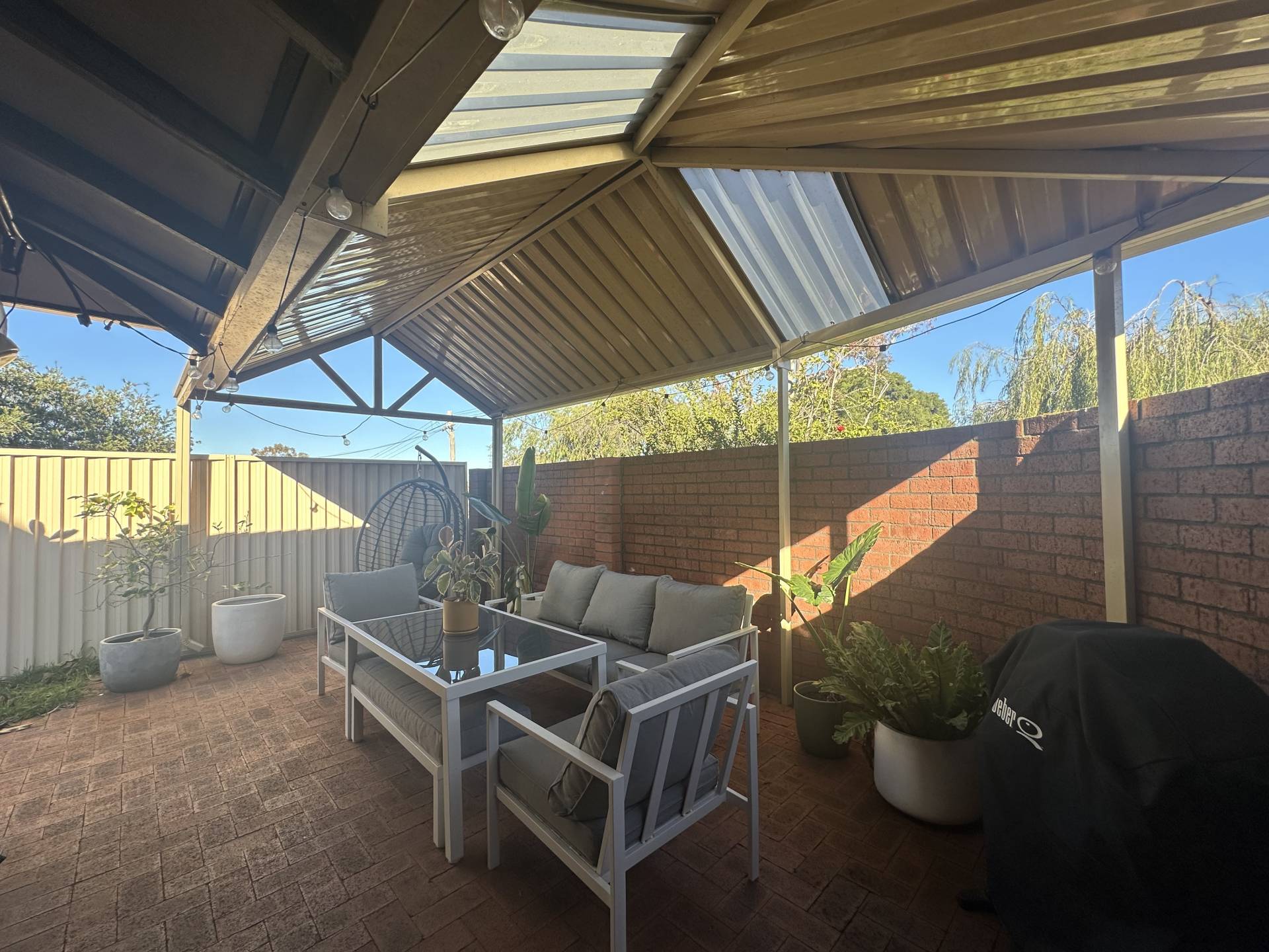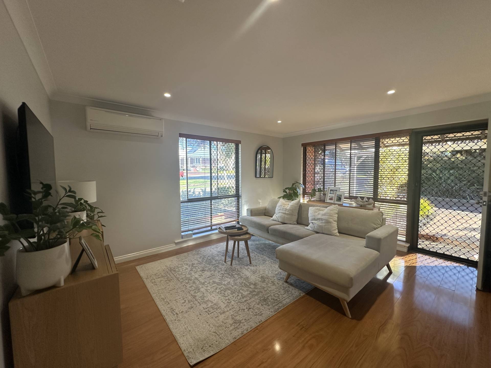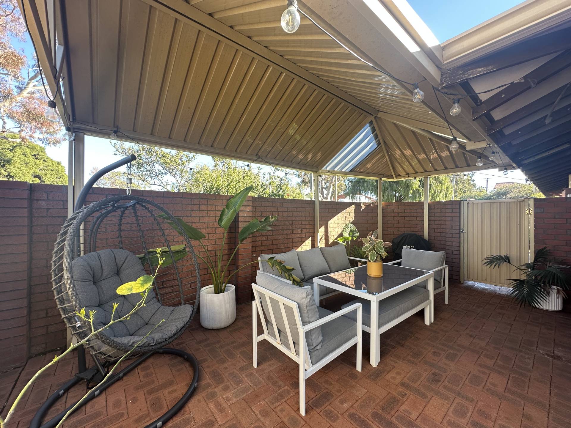 Private street front courtyard offers a covered entertaining space with low maintenance gardens. The unit includes a garage and second allocated car bay. Security screens throughout and reverse cycle a/c to living room and master. Please note ducted a/c is not in working order.