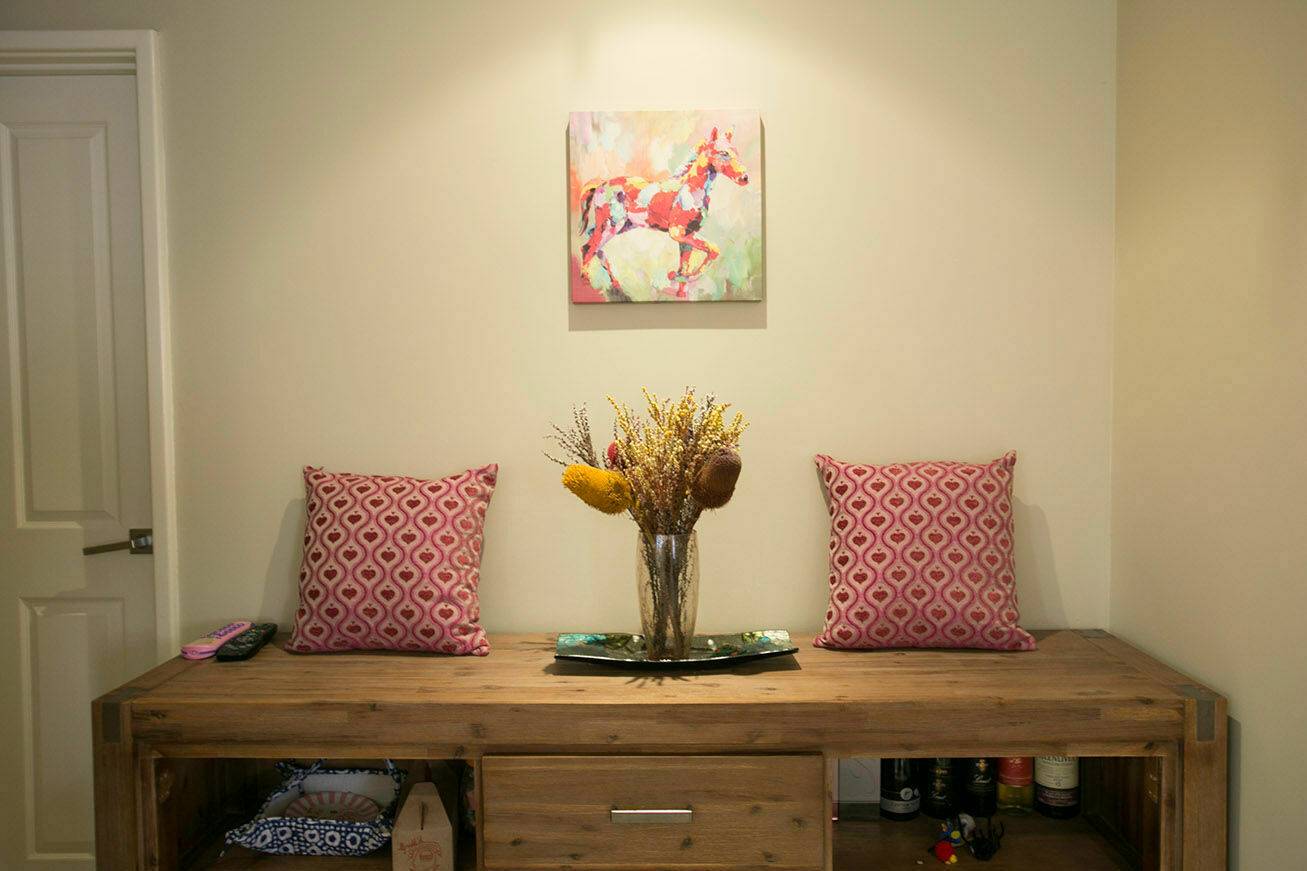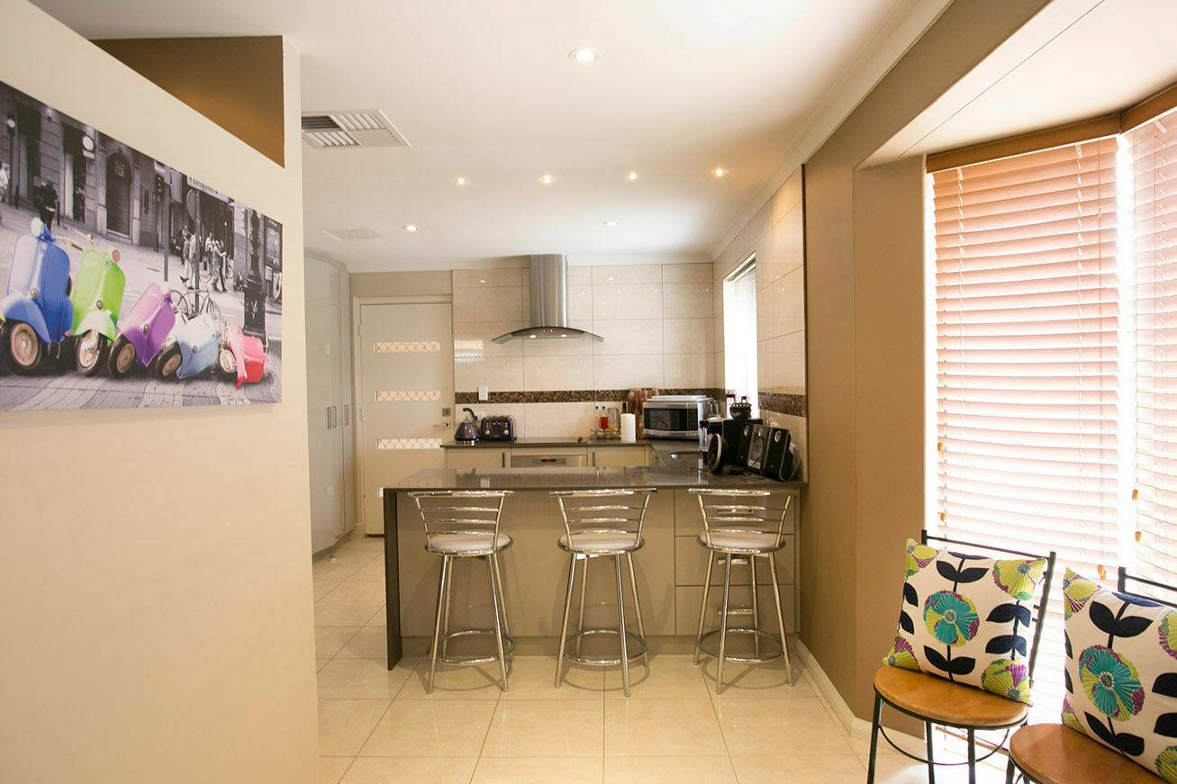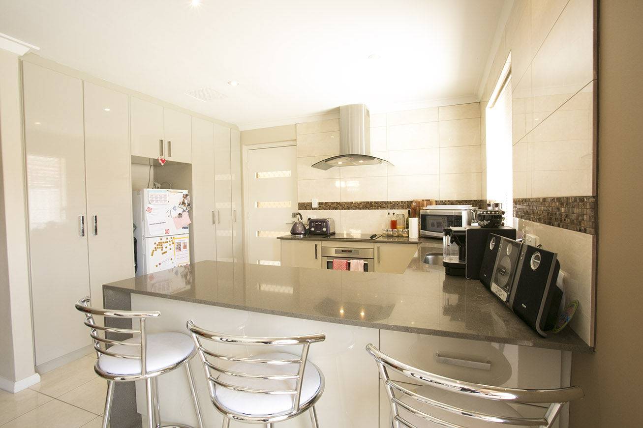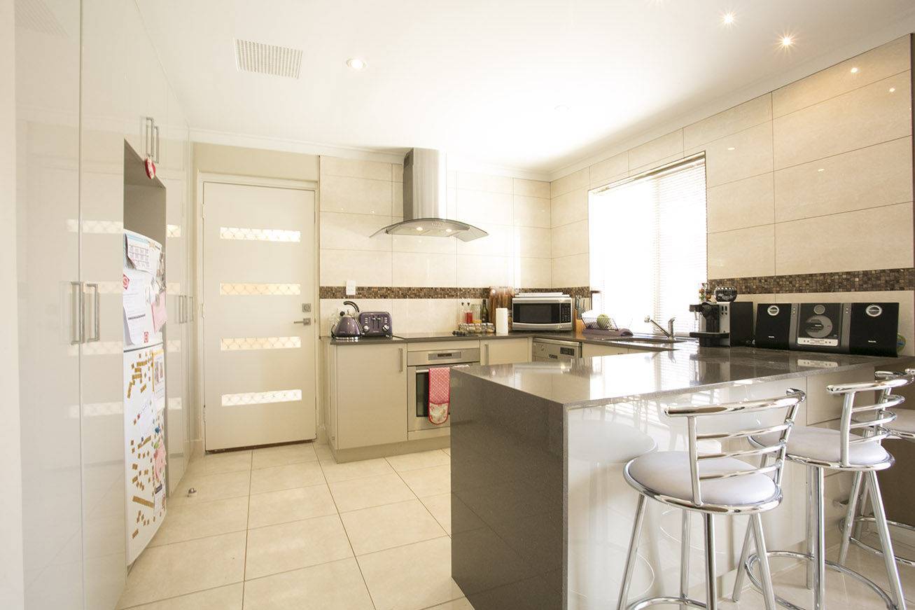 * Modern kitchen with solid bench tops and stainless steal appliances, including dishwasher