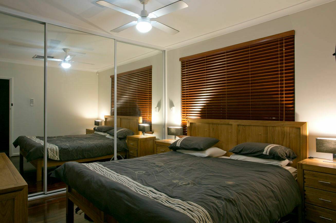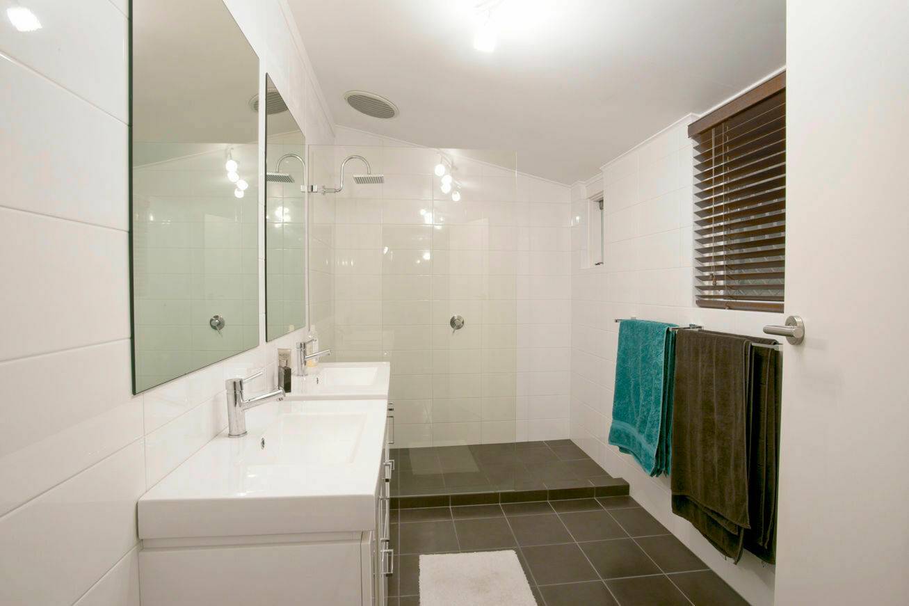 All the bedrooms are of a good size including big mirrored built in robes to the main bedroom. There is double basins in the bathroom and a seperate powder room for guests.