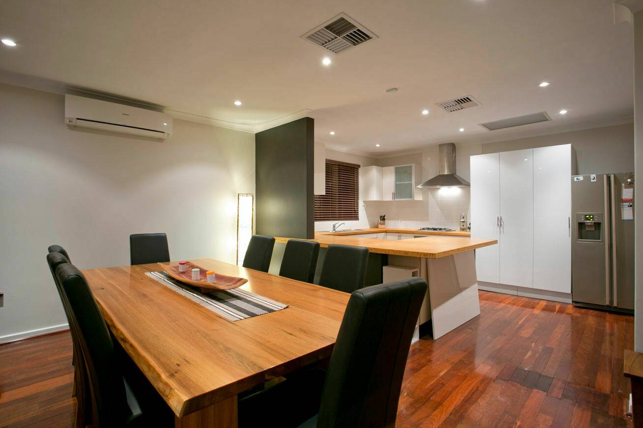 Inside you will find Solid Jarrah floors in the original part of the home, along with a great open plan kitchen and dining area. The kitchen has plenty of bench space along with all the modern features such as stainless steal appliances and dishwasher.