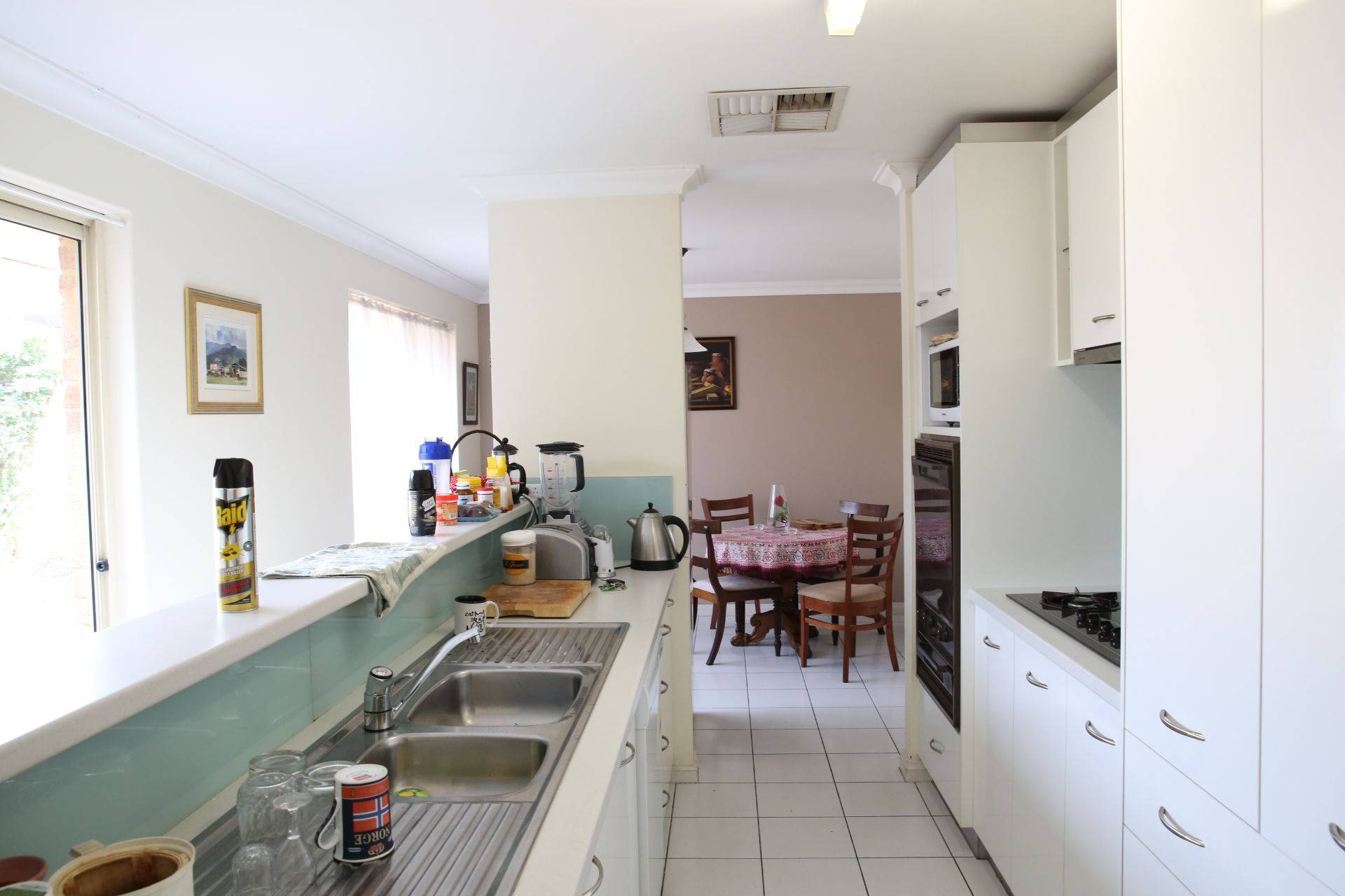 Open plan kitchen and dining, with dishwasher and plenty of cupboard space.