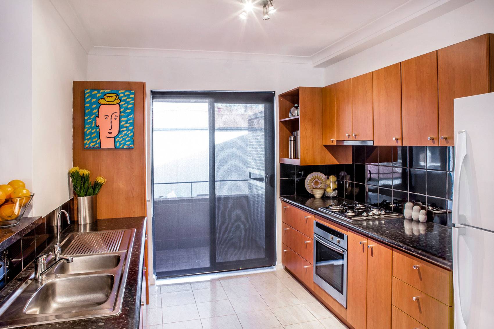 Versatile kitchen with stainless steel gas appliances, with access to a small second balcony. Perfectly located for a small easy access herb garden!