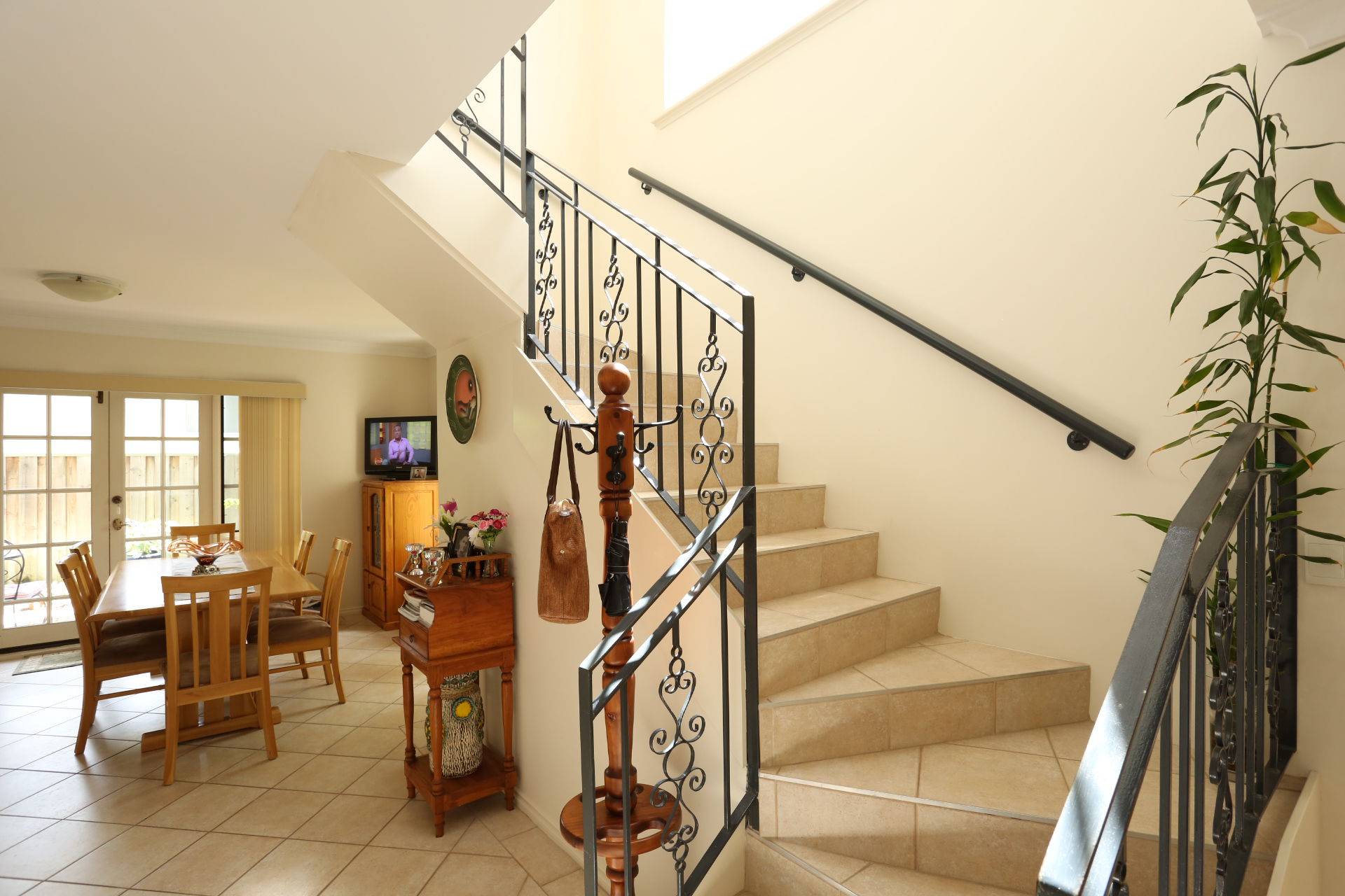 From the stairs with its wrought iron ballustrading you have the large main bedroom and balcony. Built in robes are generous and the semi en-suite has great light.