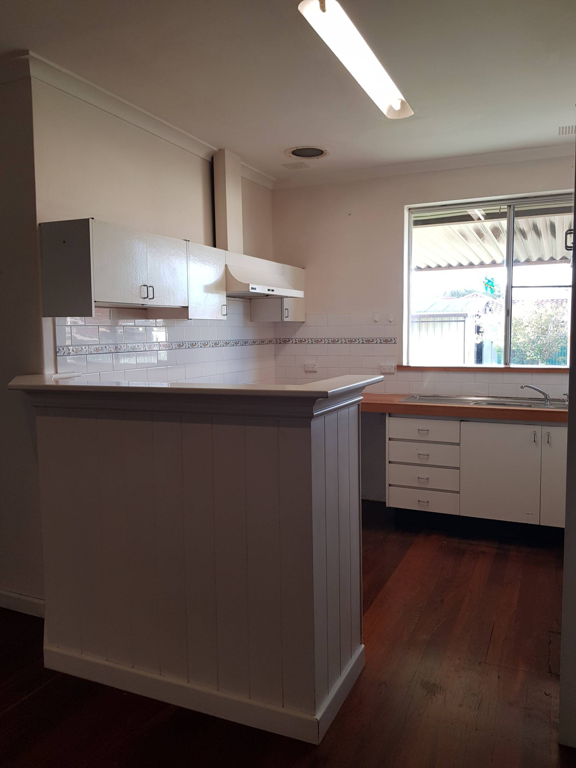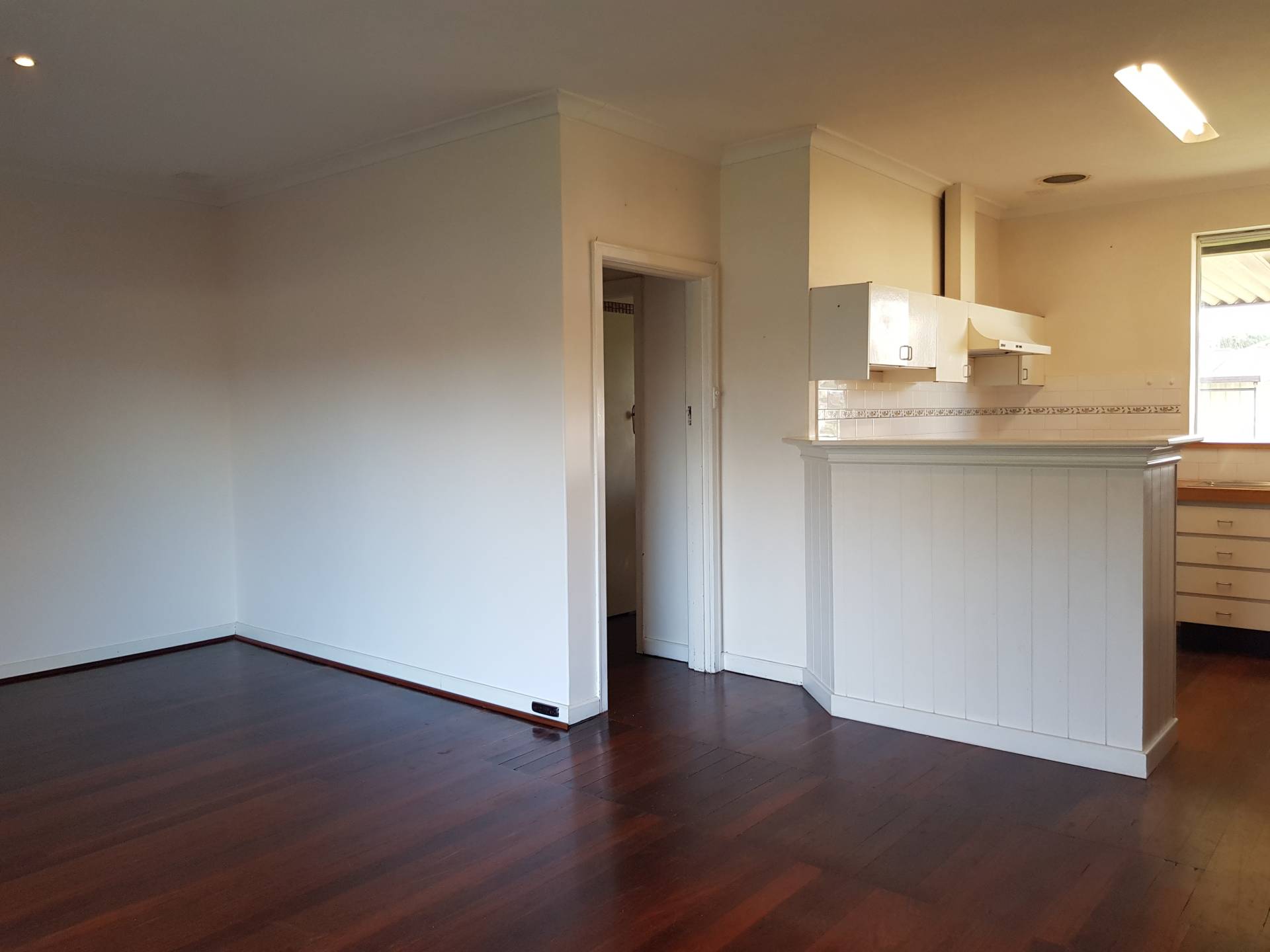 Open plan lounge and dining, overlooking the well-manicured front lawn. Plus kitchen with has stove and ample cupboard and bench space.
