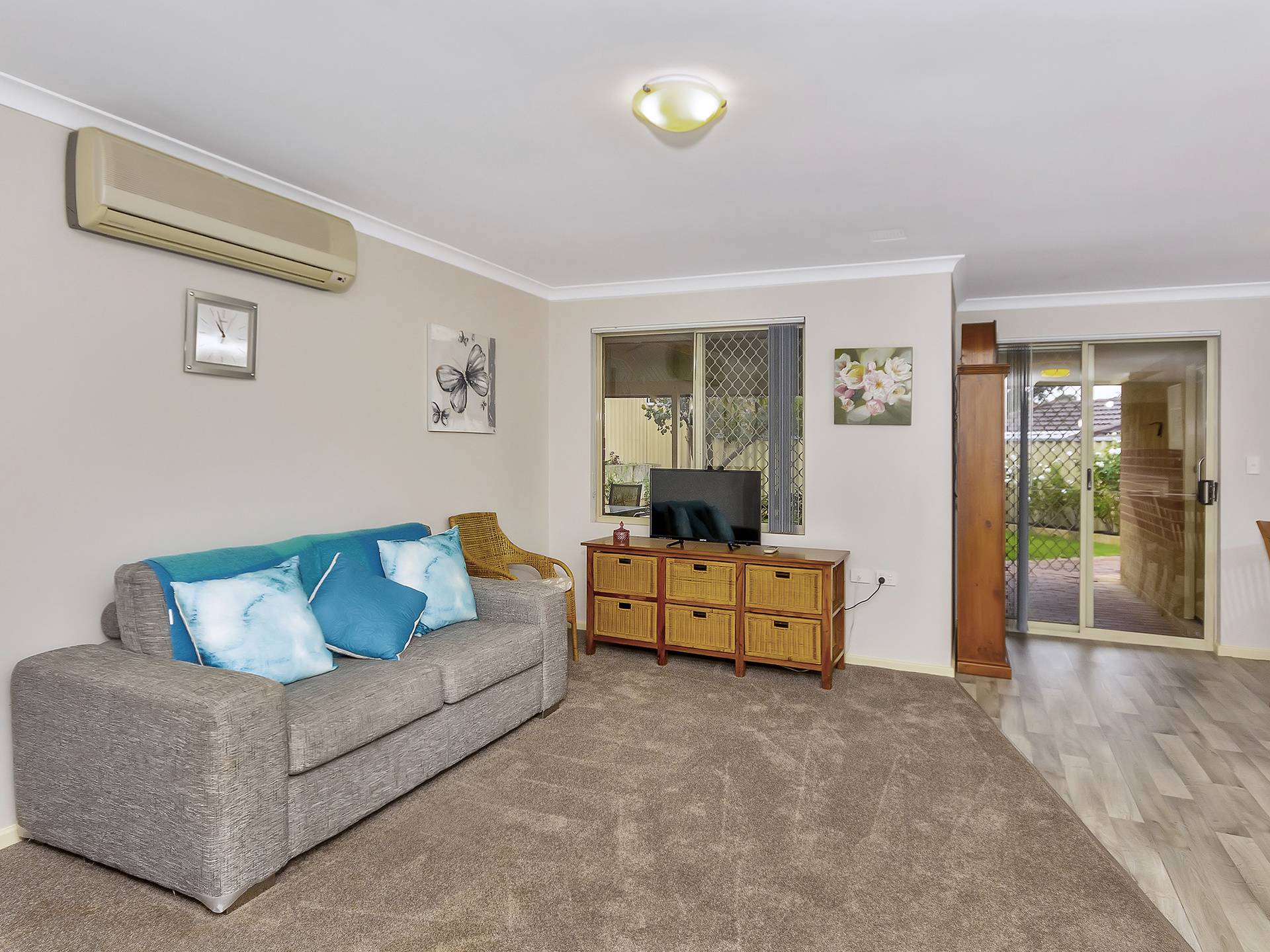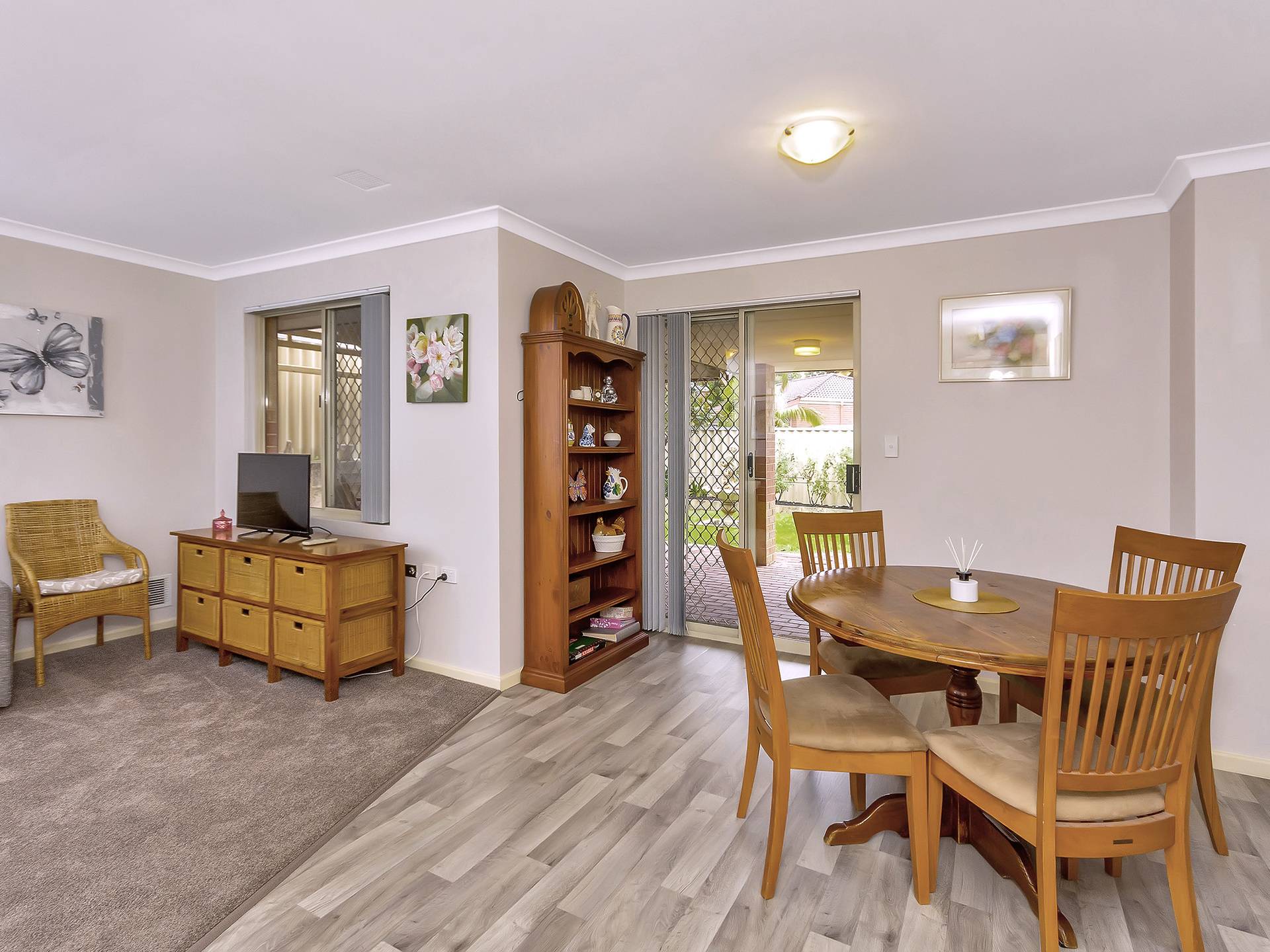 This Beautifully Presented over 55's villa is exceptionally presented and in perfect condition. Nicely positioned in Justinian Street where you are so conveniently located to every amenity. This home (North facing from the back), offers generous sized bedrooms, excellent living and dining area thats open plan where you have that feeling of spaciousness with a neat large kitchen with gas hotplates lots of bench space and cupboards, 2 split reverse air conditioners, 2 ceiling fans, superb outdoors with covered pergola area for entertaining, gorgeous lawned garden area with reticulation, store room, remote lock up garage, plus other extras.