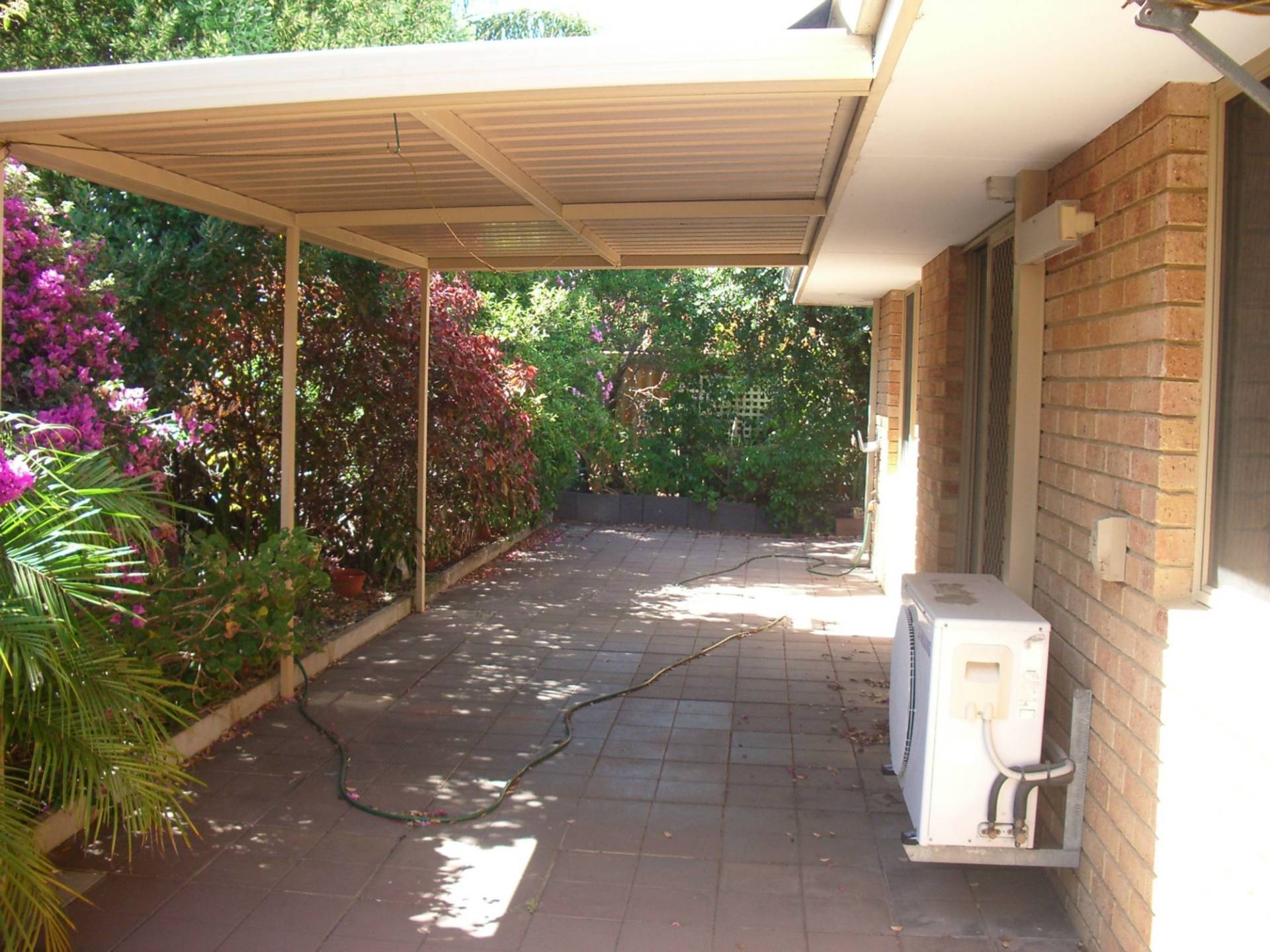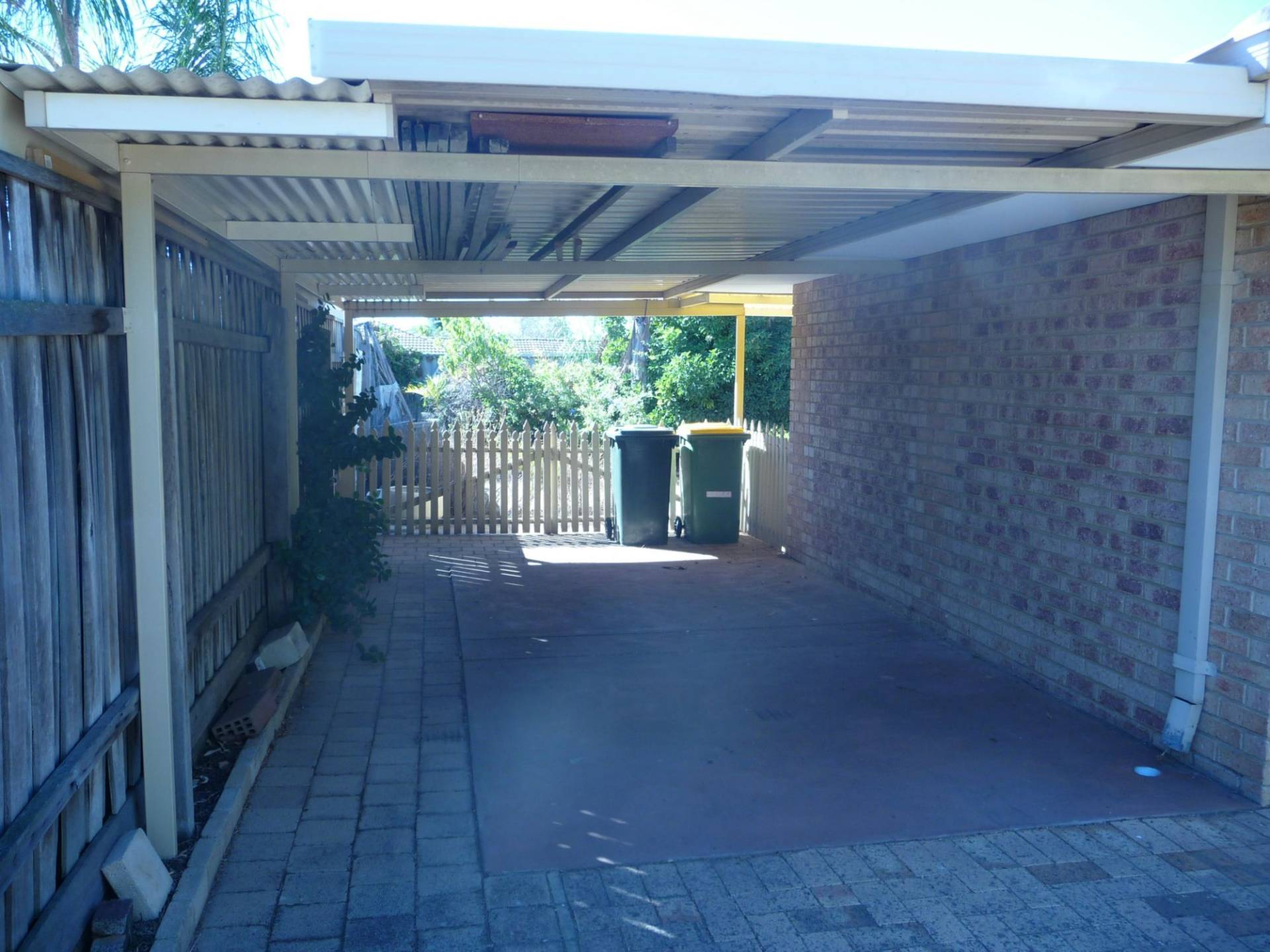 Covered patio area, garden shed and two carports.