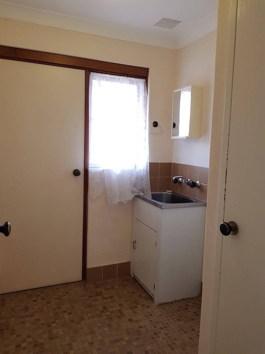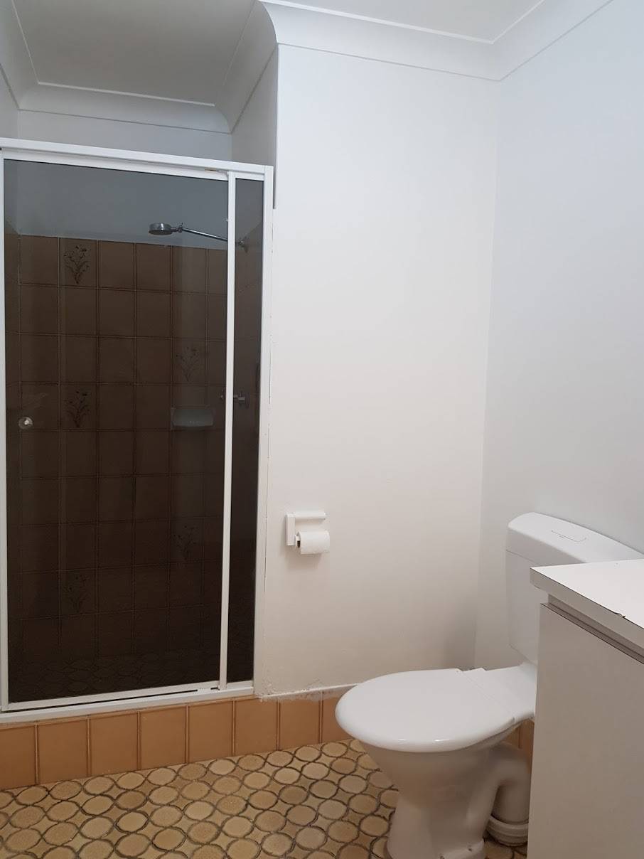 Bathroom with shower and toilet, plus a separate laundry.