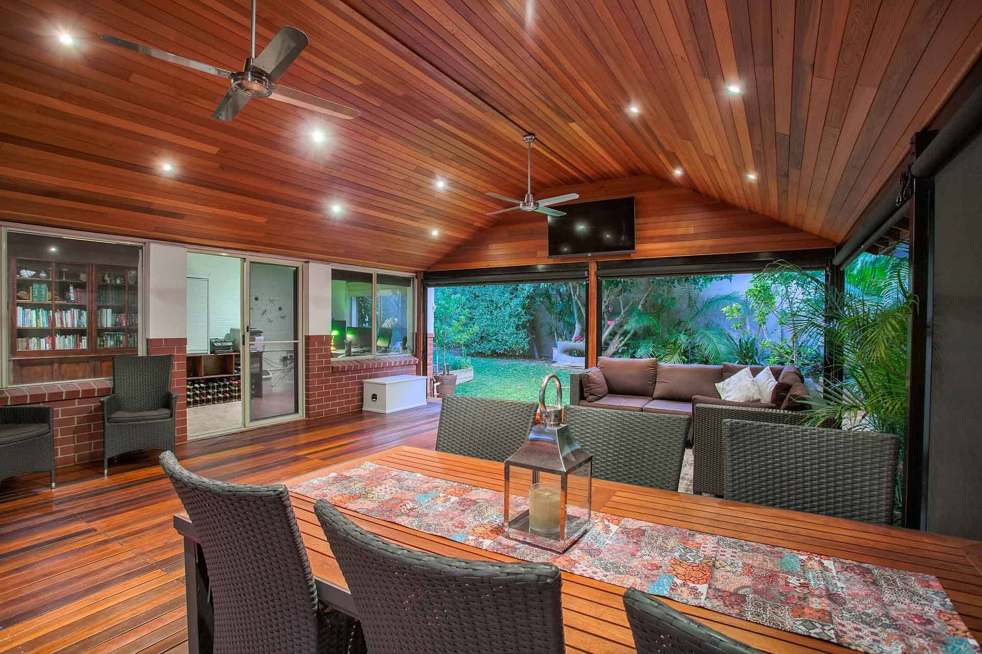 The outside area offers amazing parkland views to the front and the awesome alfresco area to the back with undercover decking with cedar roofing and hide away blinds.