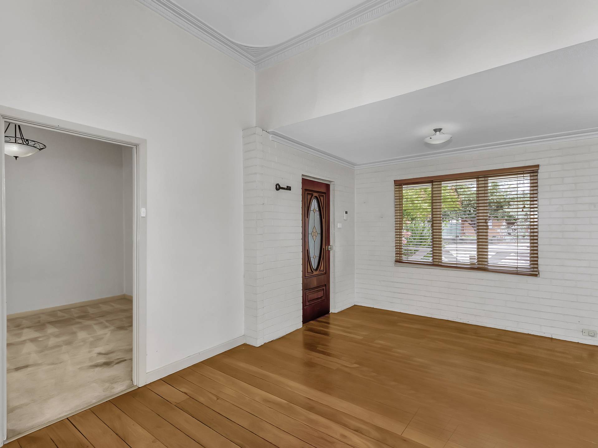 The home consists of an inviting front lounge room, with sky high ceilings, hardwood floors, air con (cooling only) and gas bayonet. Seperate kitchen with ample bench and cupboard space, gas stove and electric oven - which is overlooked by the dining room.