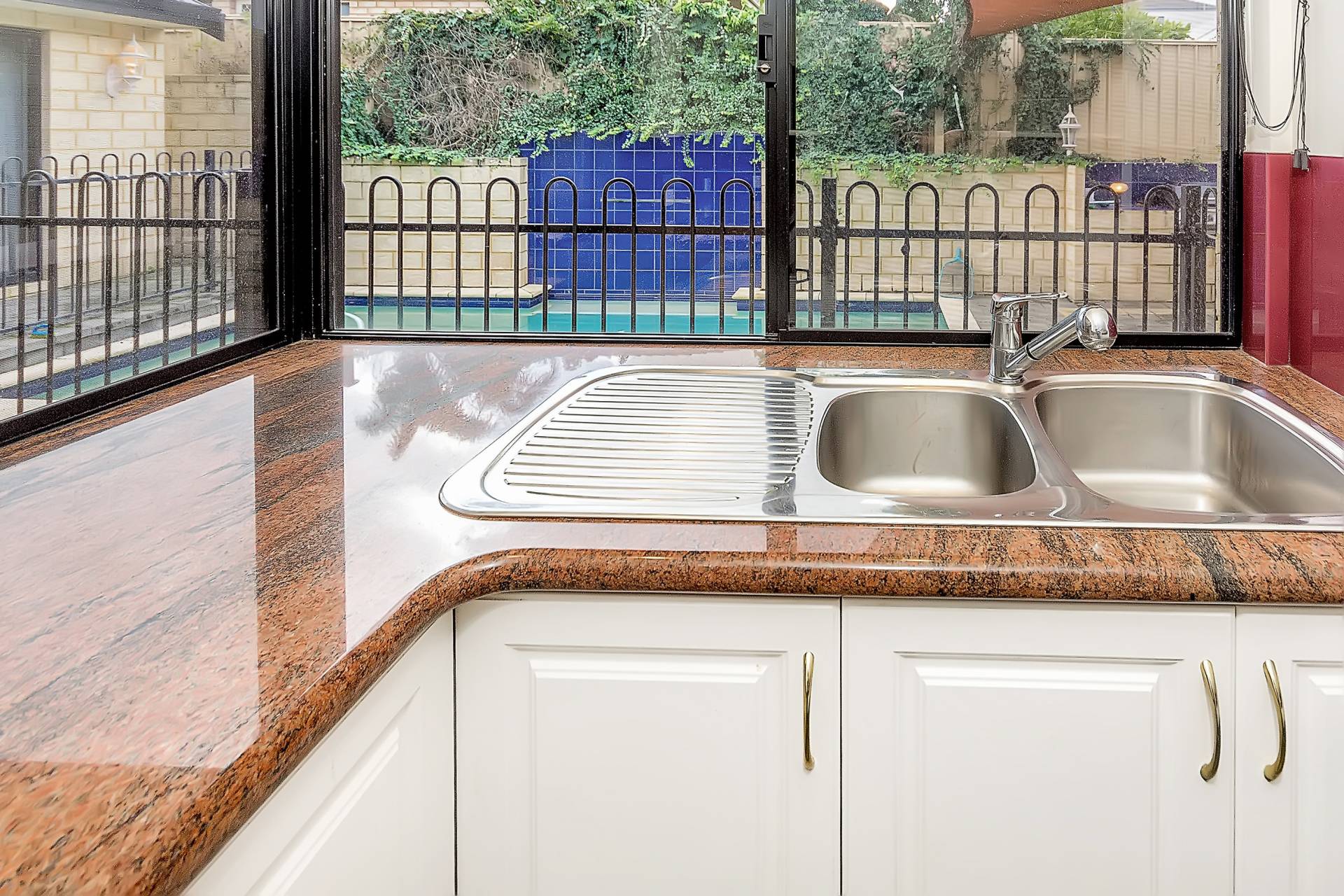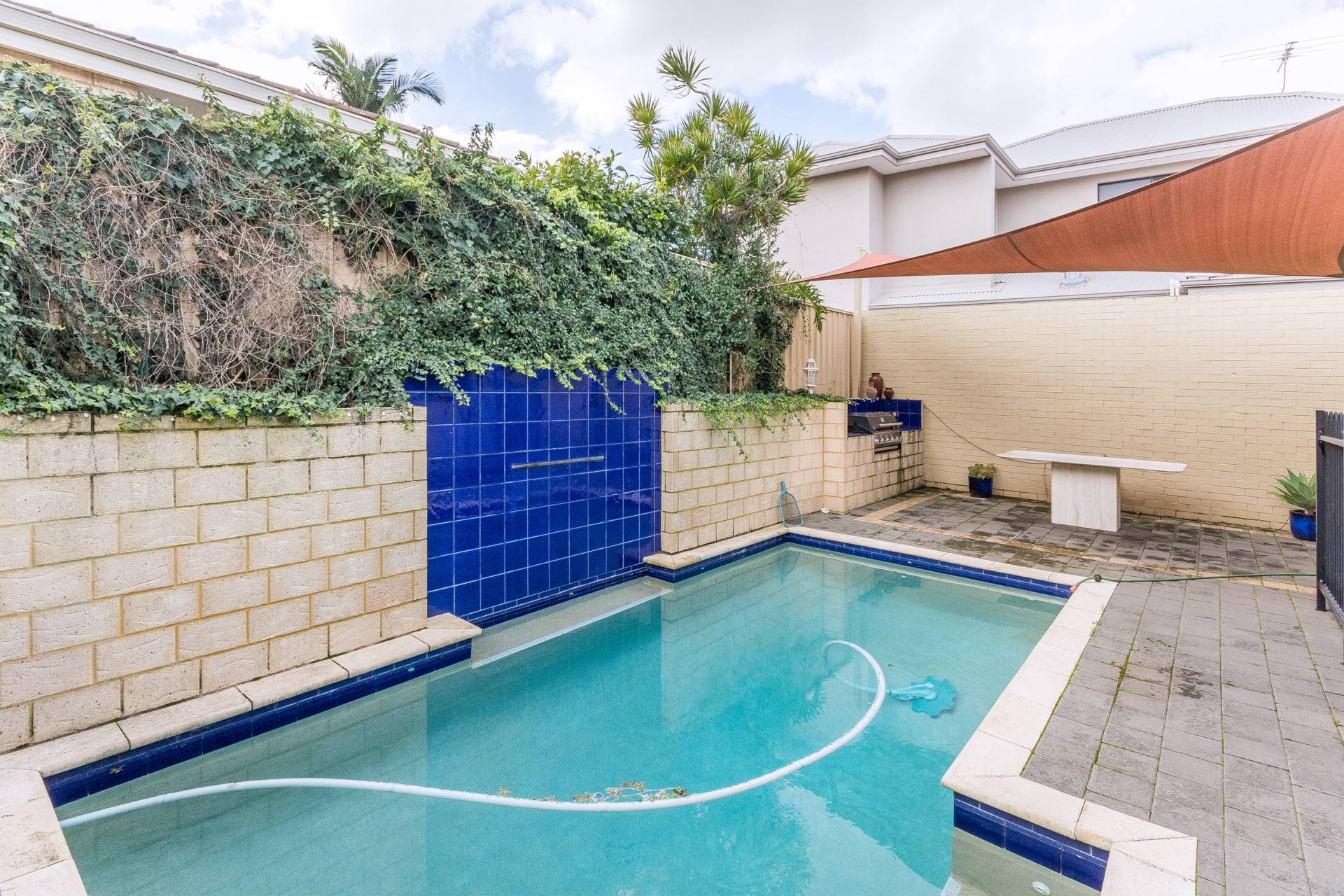 Easy care paved yard and alfresco with sparkling solar heated pool. Double lock up garage.