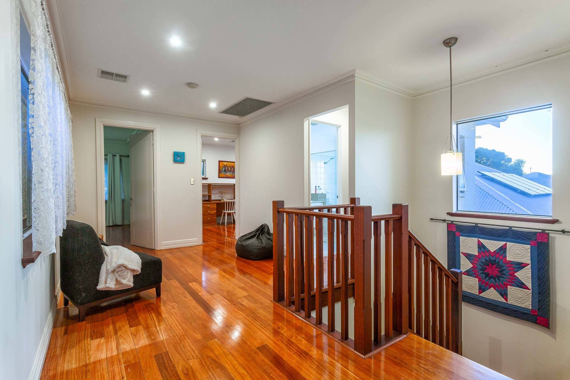 > The upstairs area has beautiful blackbutt flooring including bedrooms, bathroom plus rumpus or study area