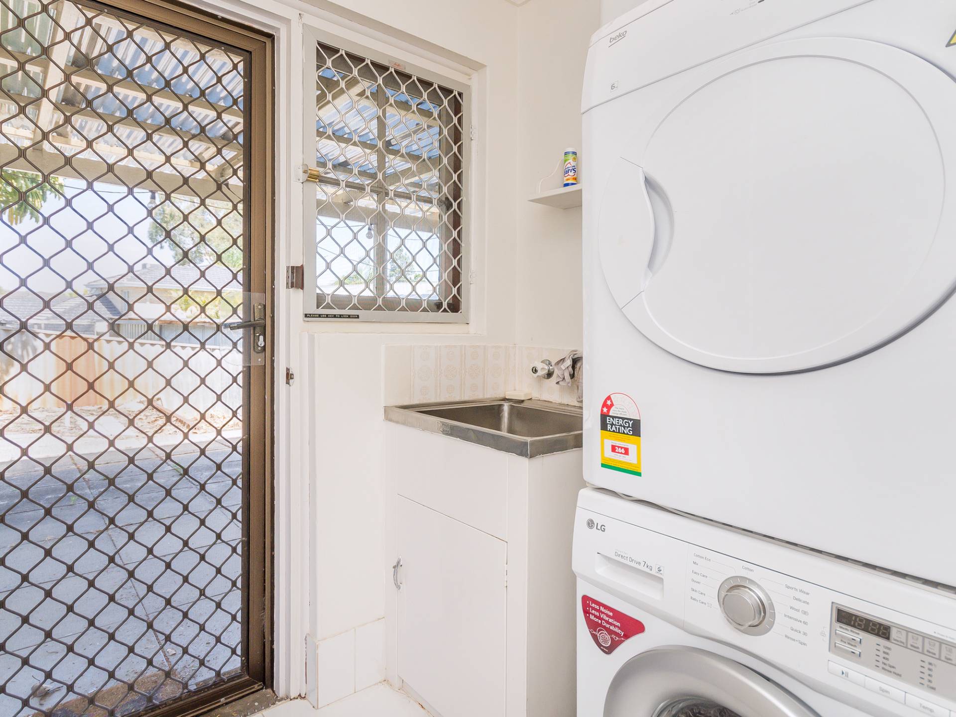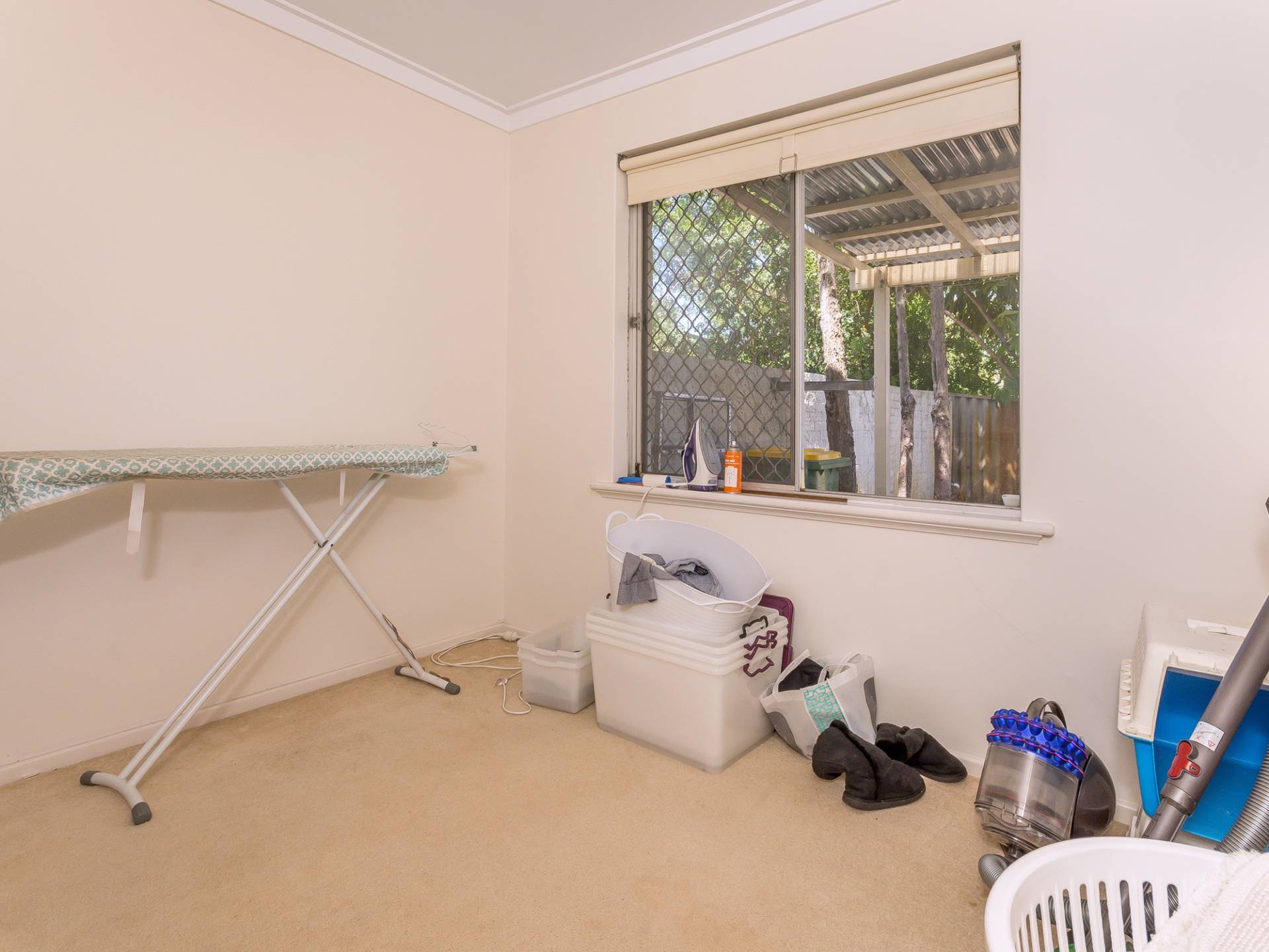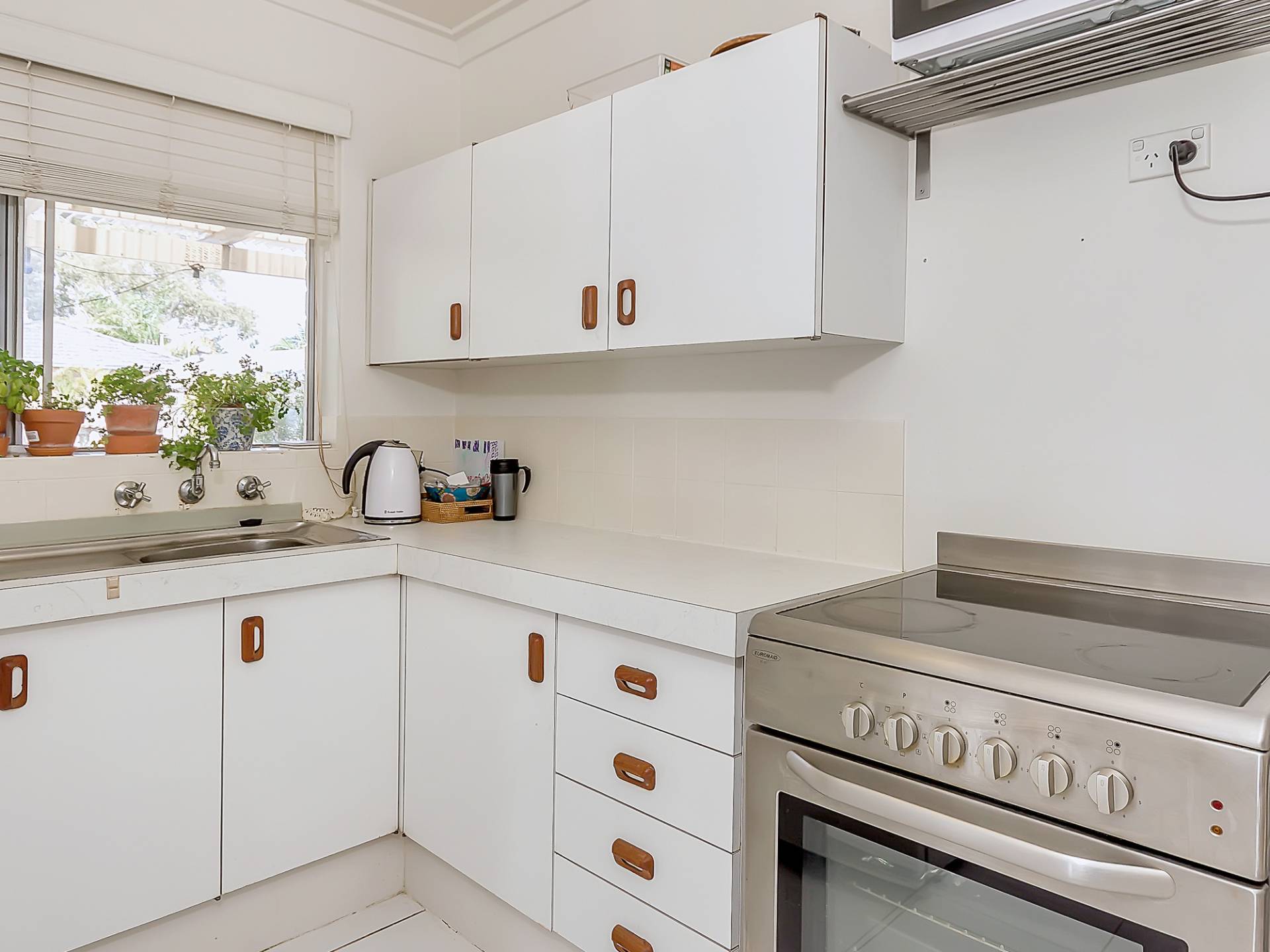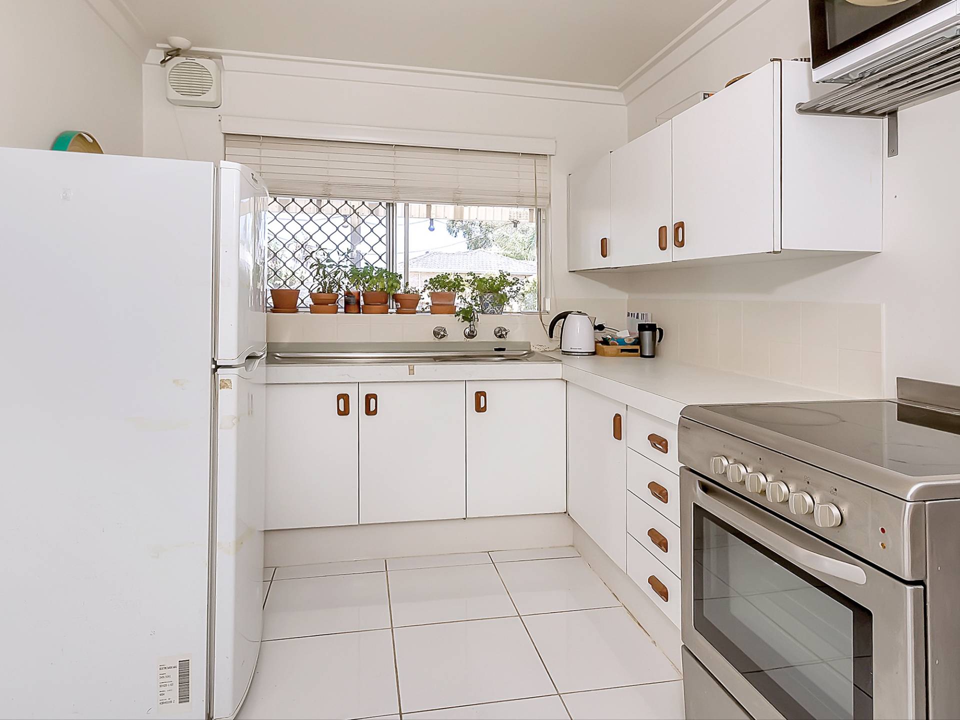 The living room is south facing with a lovely tree lined outlook over Booragoon Lake Reserve visible through french doors, which filters light throughout the living room and dining. Well presented kitchen, with electric stove and oven.