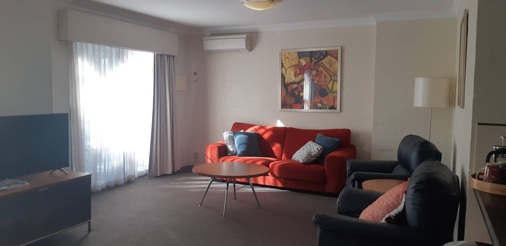 * Open plan living area, with reverse cycle air conditioning and balcony access.