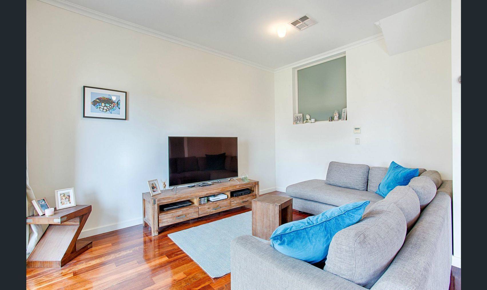*Front lounge room, with additional open study/toy room. Ceiling fan, and foxtel point. Double glaze to front windows. * Reverse cycle air con throughout.