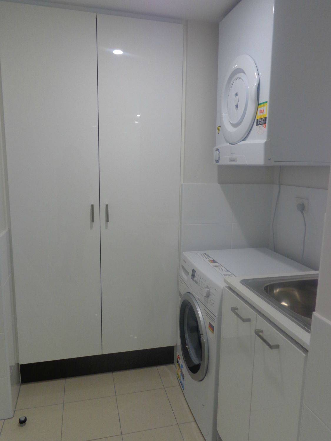 This apartment consists of 2 nicely sized bedrooms with built in robes, reverse cycle air con and balcony access to master. 2 bathrooms, which are beautifully finished - one including laundry area, built in storage and dryer.