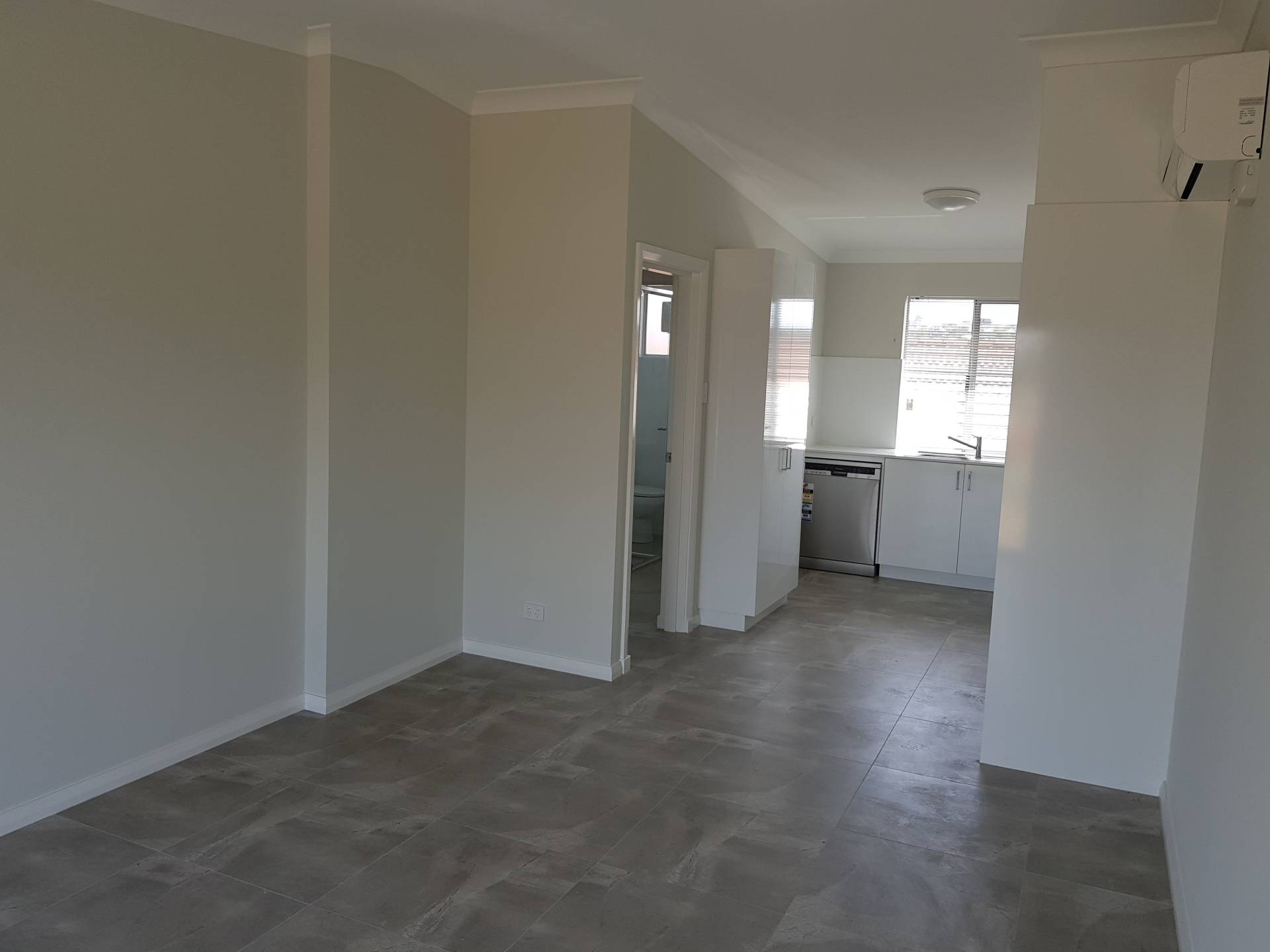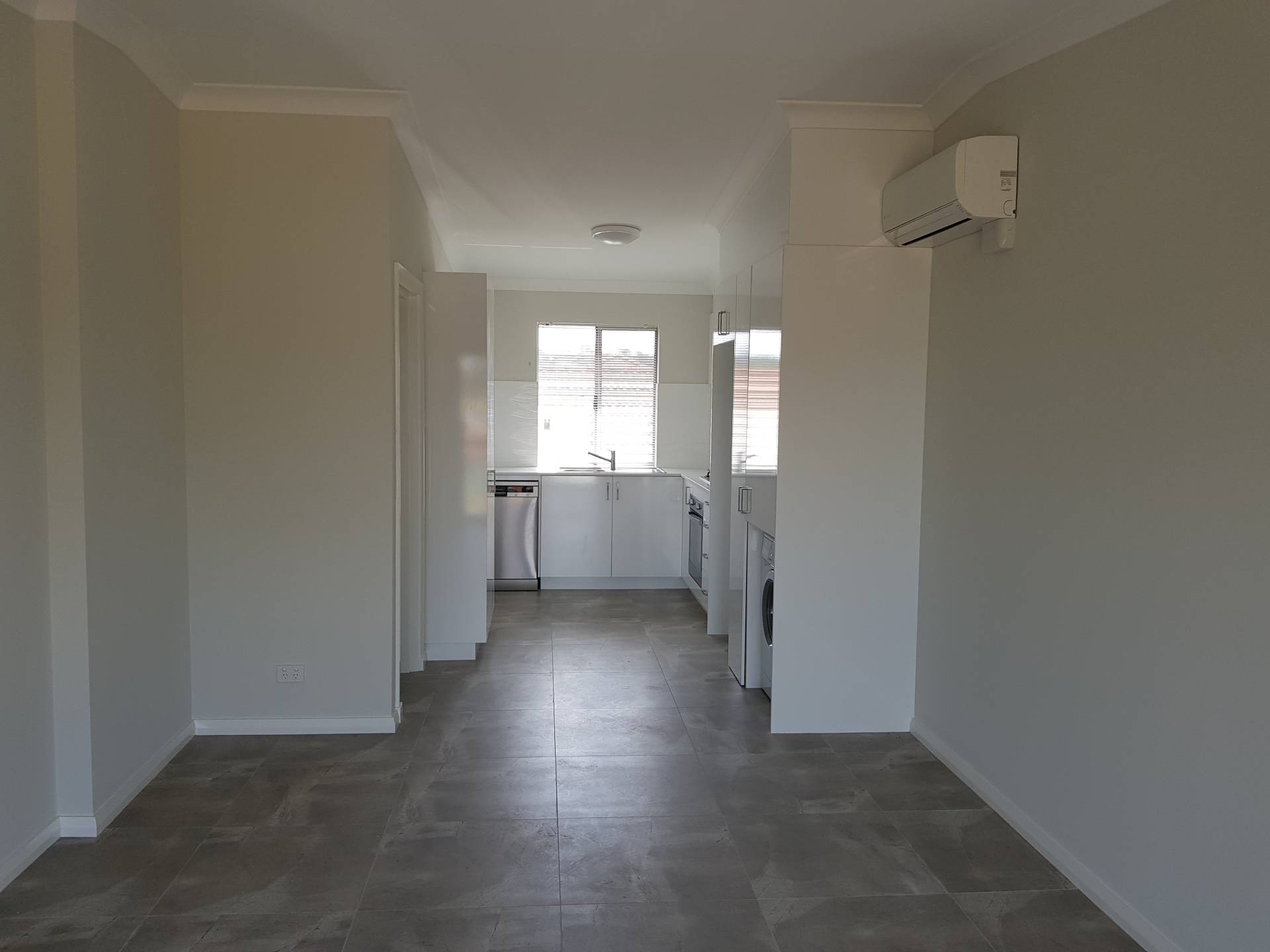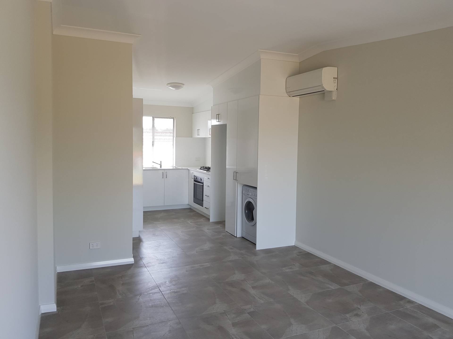 Fully renovated throughout, tiled and air conditioned open plan living room and kitchen. Gas stove, dishwasher and washing machine/dryer.