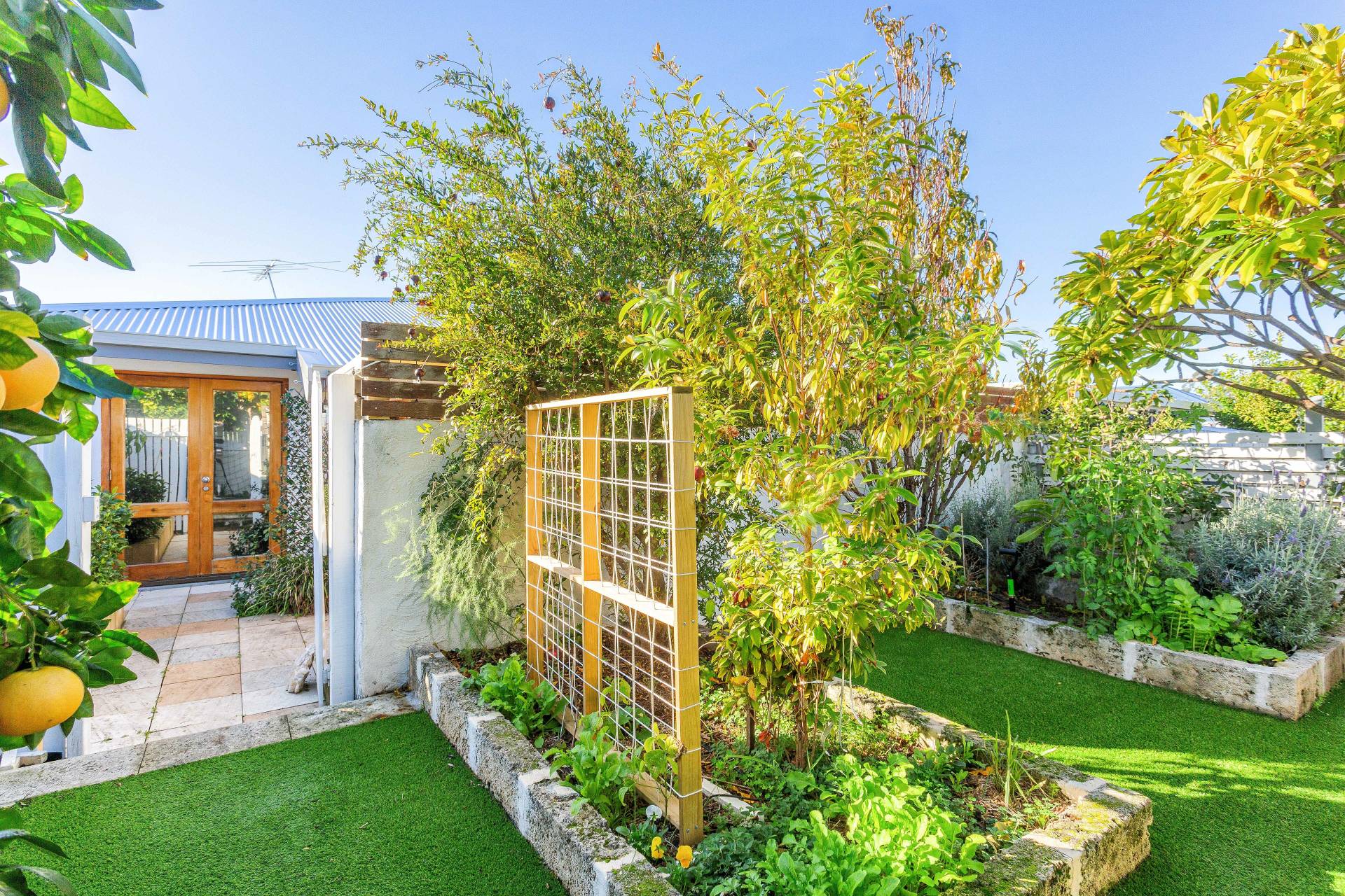 The entertaining area is privately positioned and gated/secure. A secret gate leads through to a magical garden including endless fruit/citrus trees and low maintenance synthetic lawn. A true green thumbs paradise!