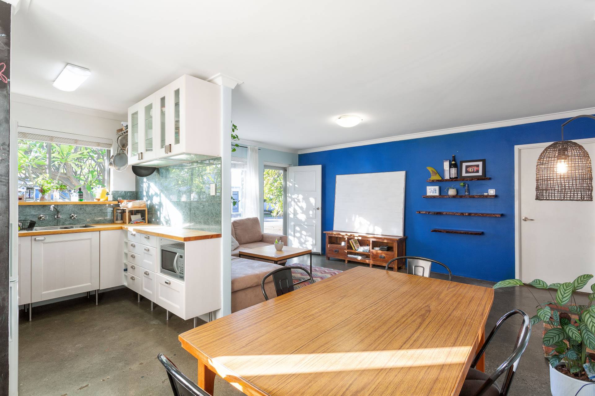The open plan living room is flooded with morning sunlight and consists of polished concrete flooring which flows throughout. The renovated kitchen and bathroom/laundry allows for a simple transition into your new home.