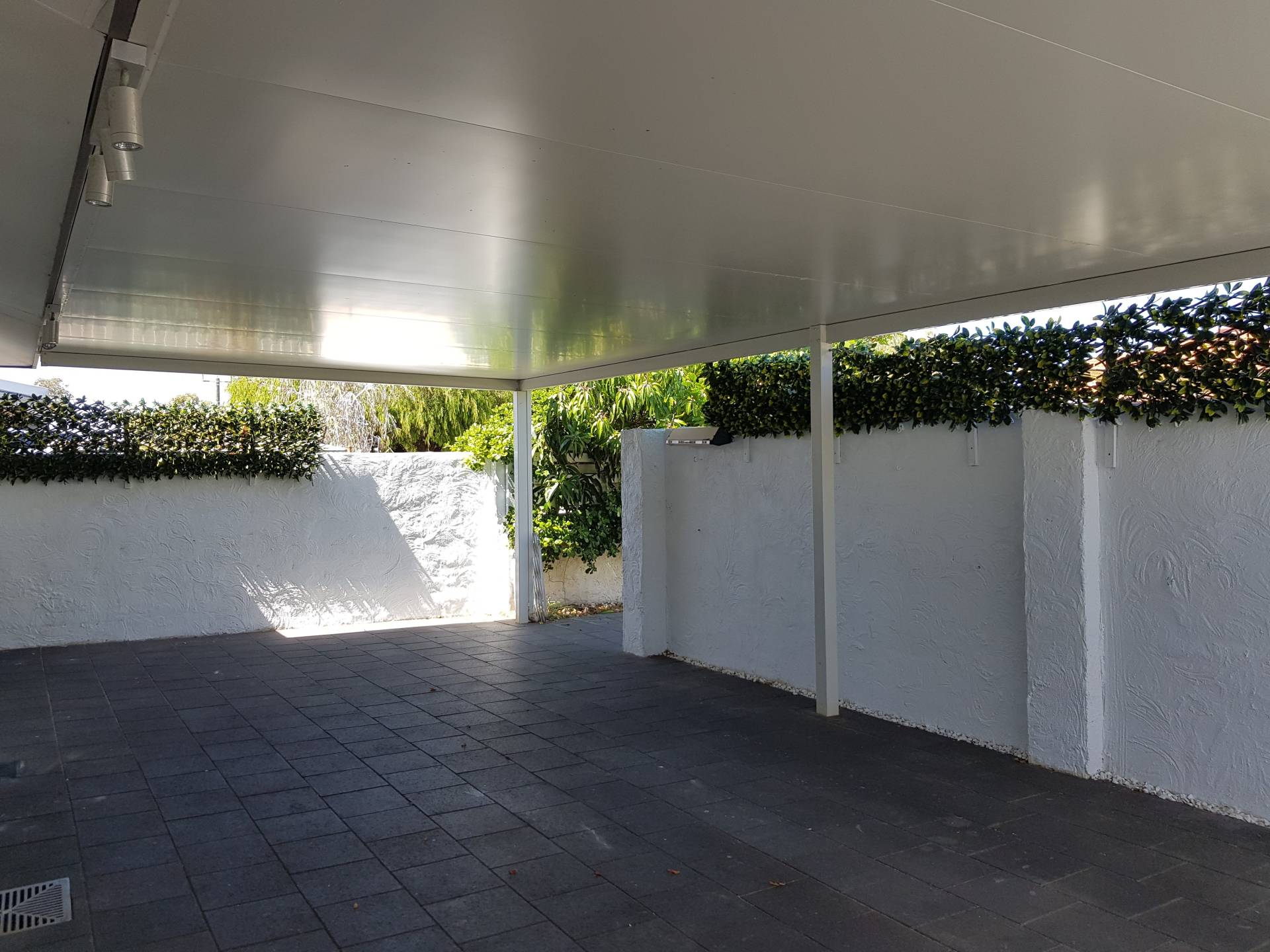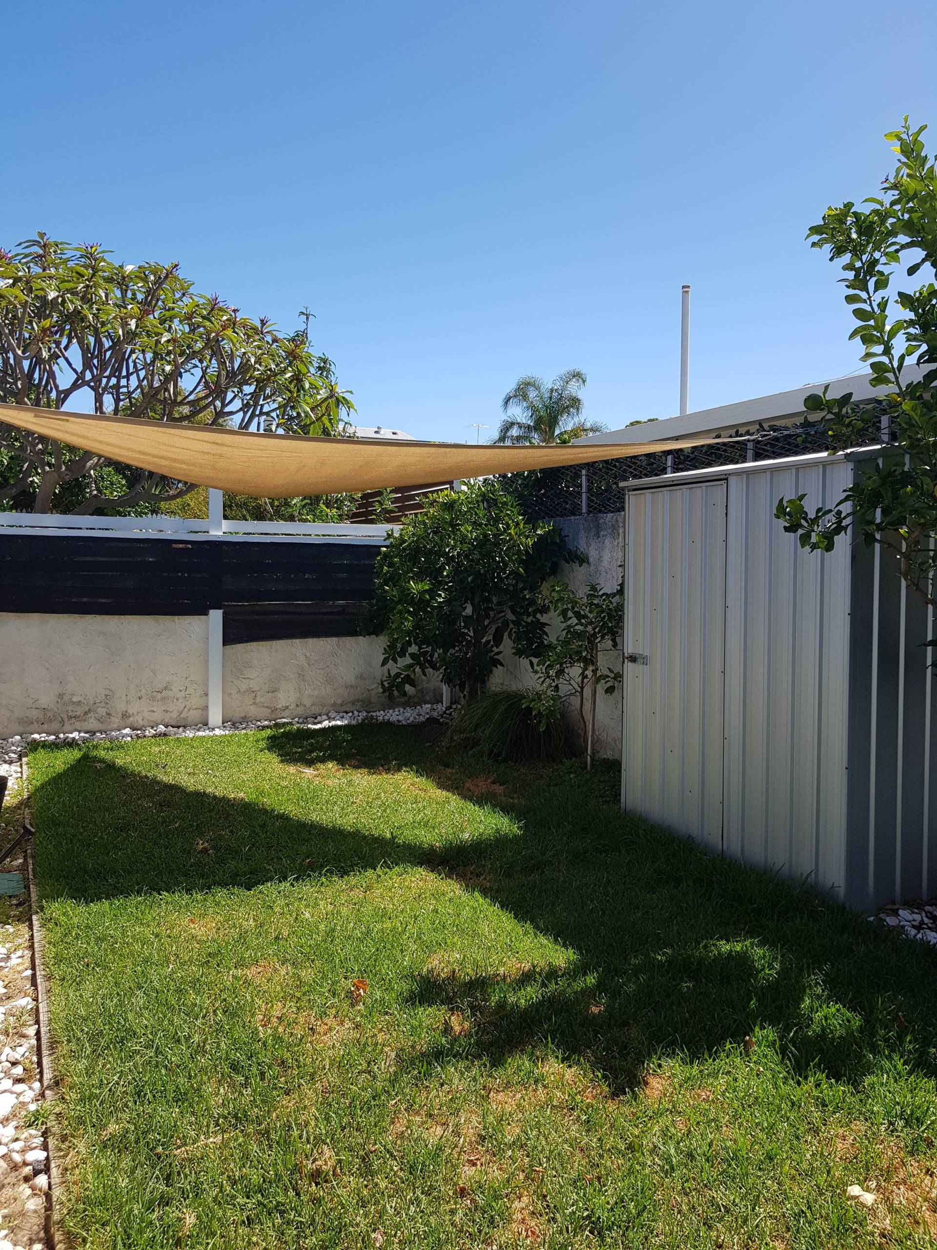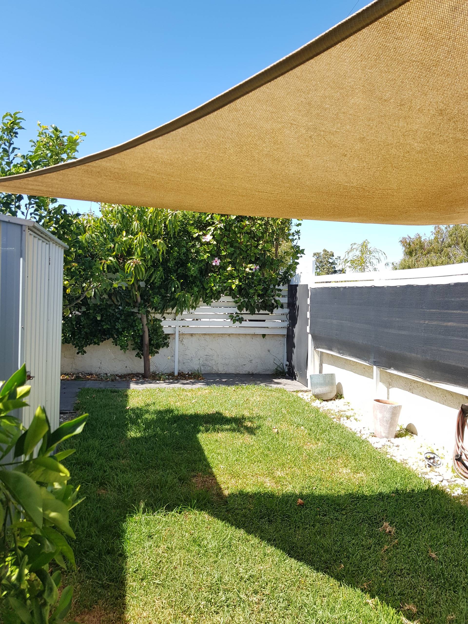 The yard is facing Point Walter but has been well designed! HUGE insulated patio area for entertaining and small garden with mature fruit trees, small storage shed a secured gate to Point Walter Rd. Very small pets considered.